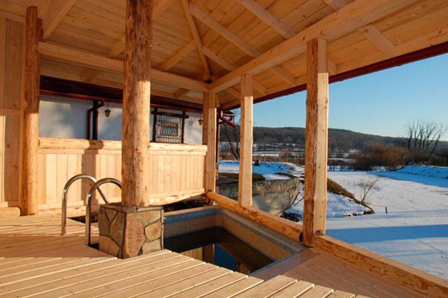 Um banho de log é uma tradicional casa de madeira russa feita a partir de troncos inteiros com um “enchimento” moderno. Ar curado saturado com o cheiro da floresta e as amenidades da civilização - chuveiro, piscina, banheiro - criam uma atmosfera confortável.