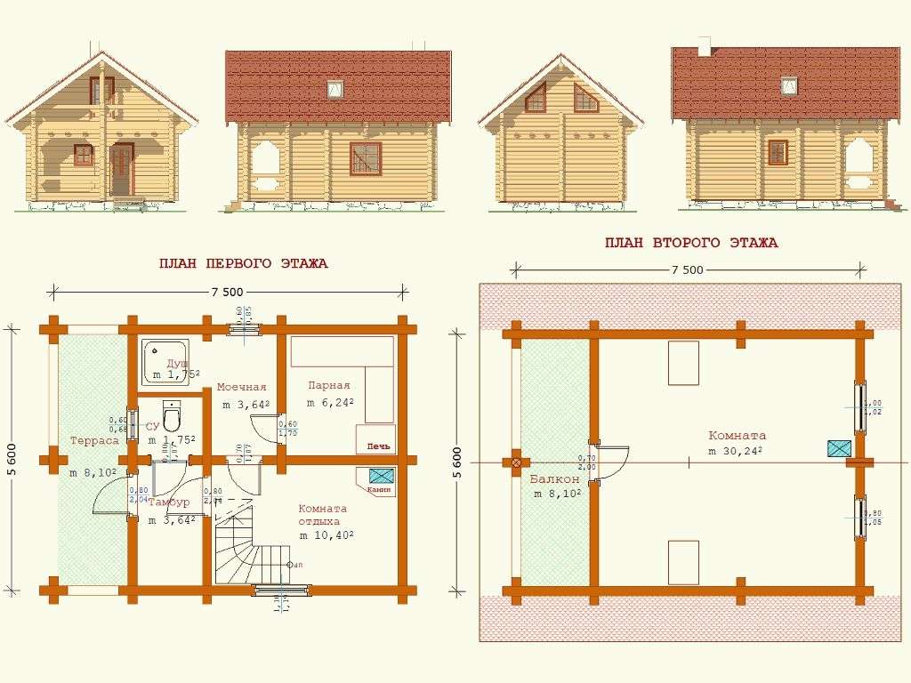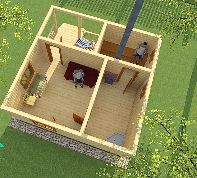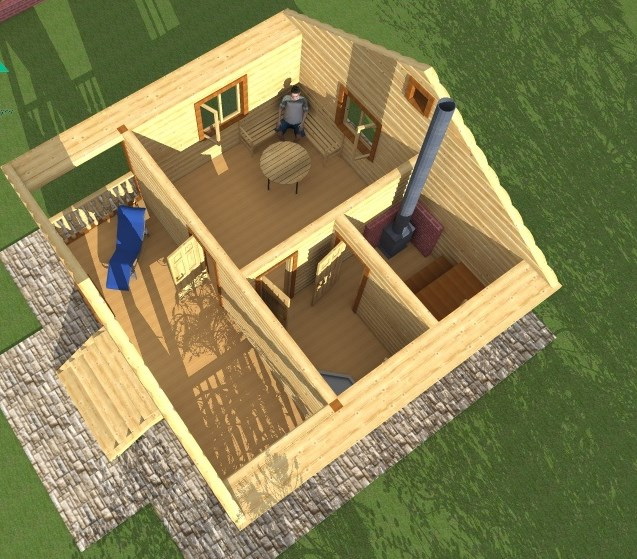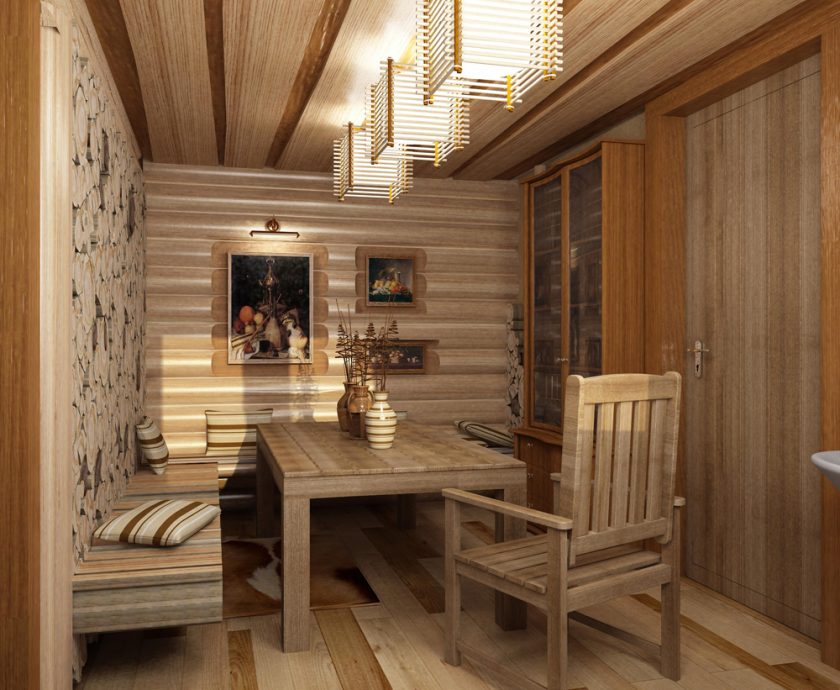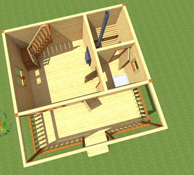 Casas de madeira parecem muito impressionantes tanto por fora como por dentro. As paredes geralmente não são revisadas, deixando a árvore em sua forma original. Os edifícios mais populares são 3x3 m, 4x4 m.