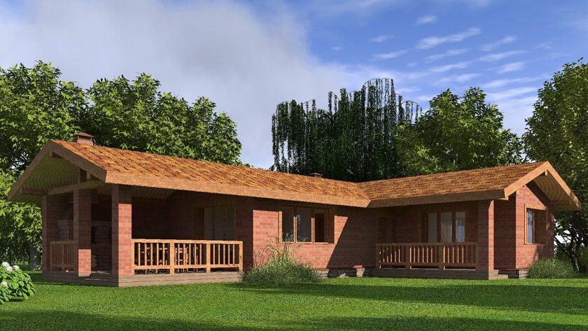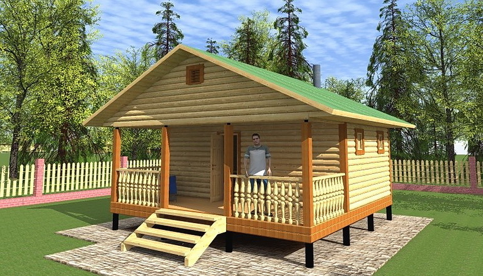 O layout do banho com terraço ou varanda é comum na construção suburbana. O edifício principal é executado de acordo com qualquer tecnologia escolhida - desde tijolos, blocos de espuma, madeira, toras.