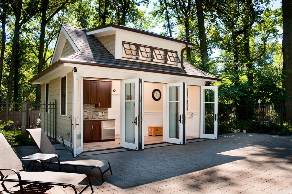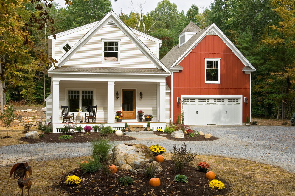 A garagem é projetada como parte da casa, compondo-a com um todo. Supõe-se que a garagem - este é um refúgio para o carro e uma despensa adicional para armazenamento. Muitas vezes as famílias usam a garagem como depósito para armazenar picles e torções, equipando o armazenamento de prateleiras.