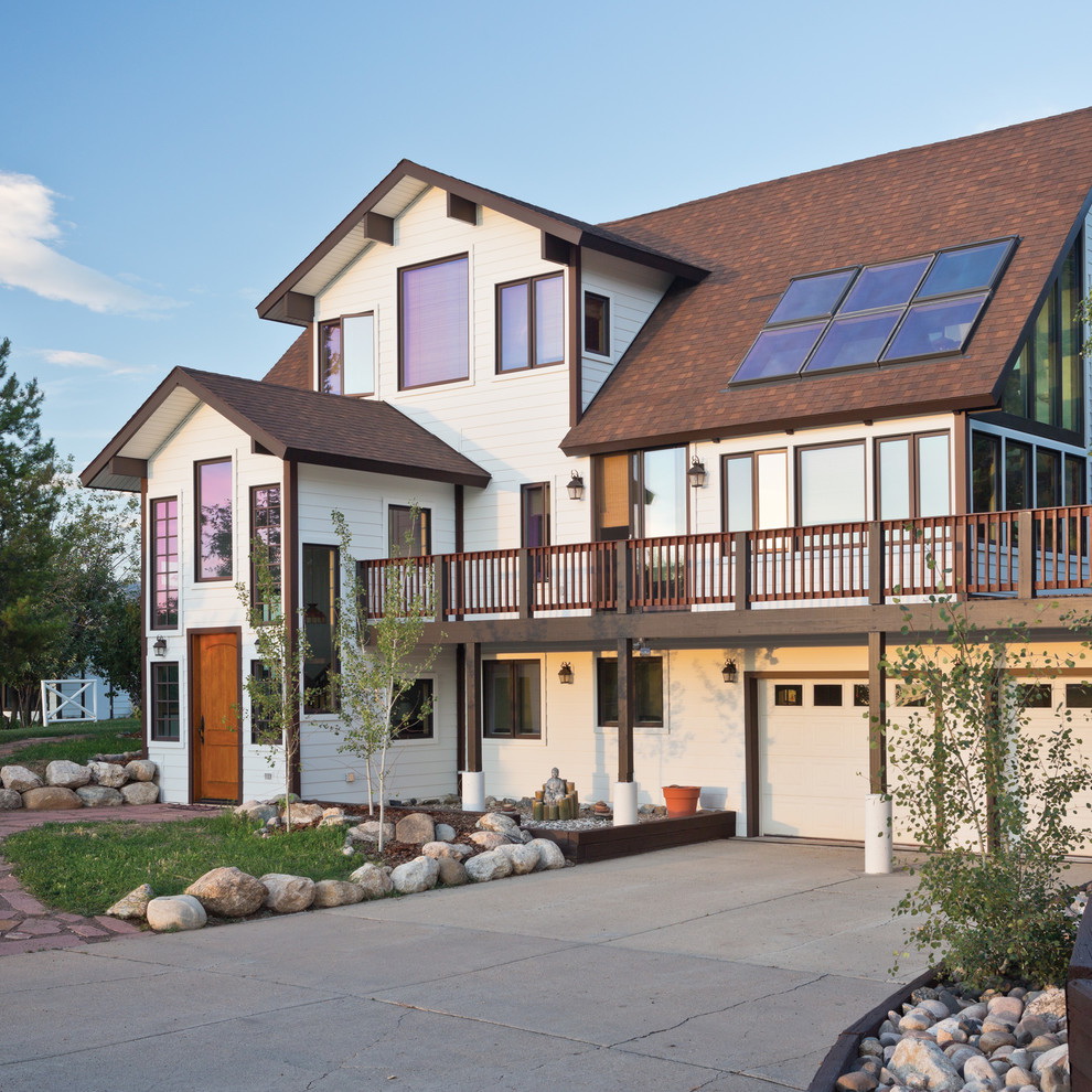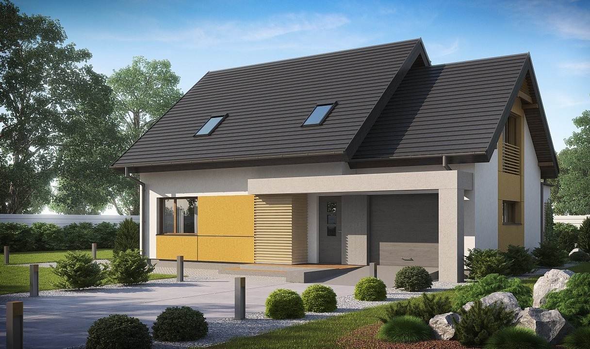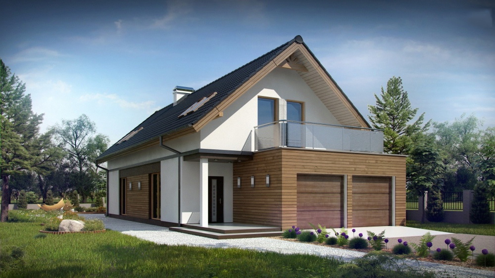 Tendo considerado todos os prós e contras da garagem embutida, acrescentarei que no espaço livre você pode construir um playground ou colocar um gazebo. Economize na construção de uma casa com uma garagem pode ser, abandonando o segundo andar em favor do sótão.