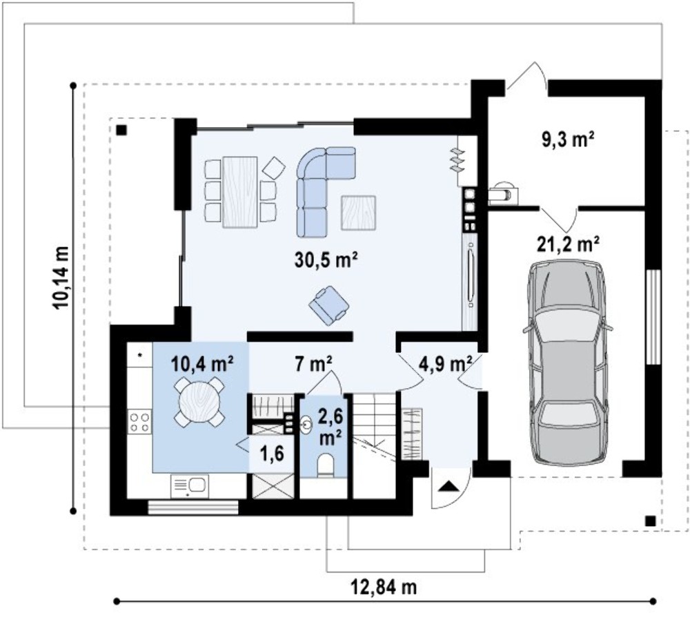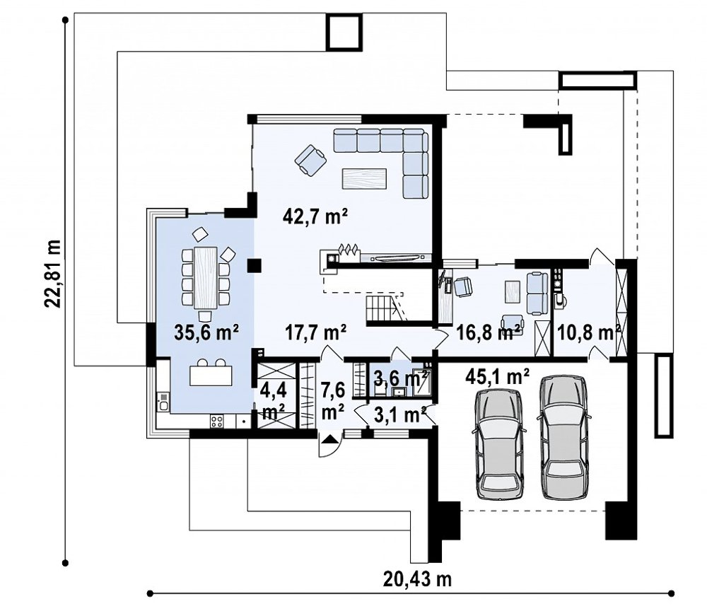 O carro está em quase todas as famílias, um lugar para a garagem é necessário para o desenvolvedor. Muitas vezes pensa-se que estas são despesas adicionais, e o carro pode ficar na rua. Mas se você olhar para o projeto de tal casa, será impossível resistir.