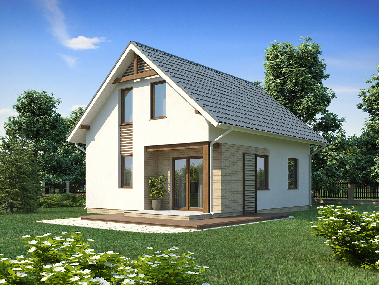 O preço de uma casa com um sótão é inferior ao preço de dois níveis devido à ausência de pisos e terrenos as paredesé por isso que eles ganharam popularidade com os clientes. Especialmente valioso quando a terra é pequena e economiza espaço - uma das prioridades. Muitos pedem para adicionar um projeto para a varanda, que irá adicionar à casa de beleza e conforto.