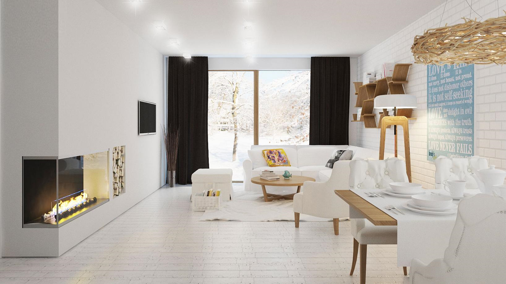 A sala no primeiro andar é para uso geral. Deve ser confortável para todos os membros da família. É melhor planejar imediatamente, contanto que você possa fazer alterações. Se a família é grande, é melhor tomar sob sala de estar a maior sala no piso térreo para que todos os membros da família possam se encaixar facilmente atrás de uma mesa grande.