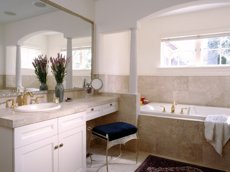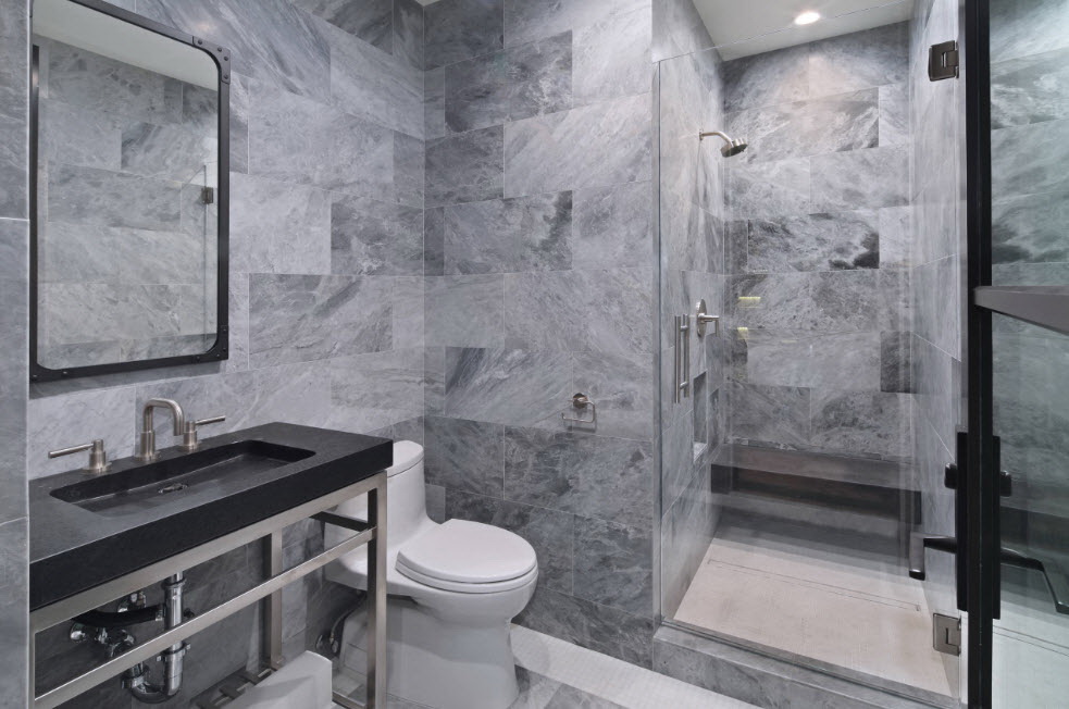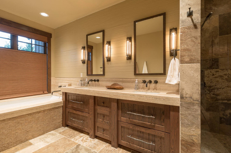 - Pedra natural. Luxuoso em banheiros espaçosos, resistentes à maioria dos fatores irritantes. As desvantagens são muito peso e a impossibilidade de restauração no caso de um lascamento.