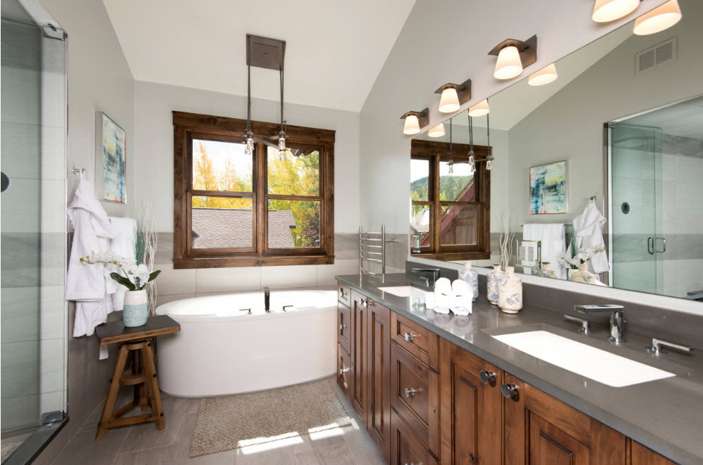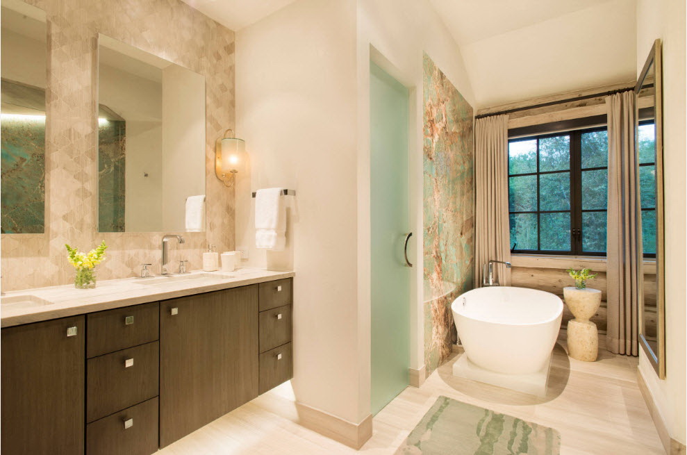 Para espaçosas casas de banho, onde a área permite dar vazão à imaginação, a compra de duas pias com um pedestal será uma excelente solução. Em uma família grande, tal aquisição é particularmente justificada. Mas na habitação de pequeno porte, é claro, a segunda pia será supérflua.