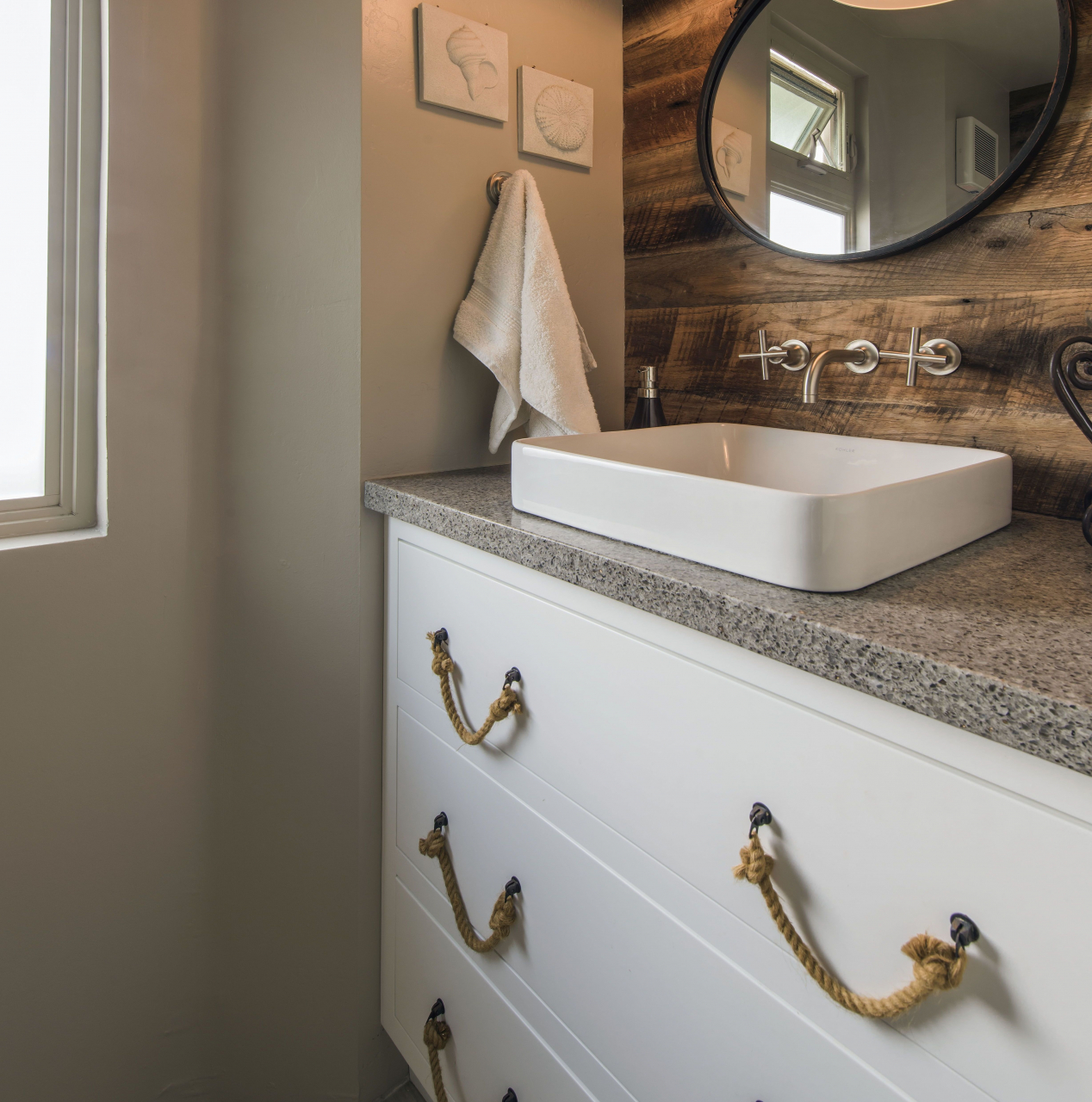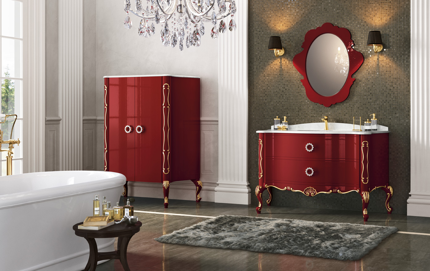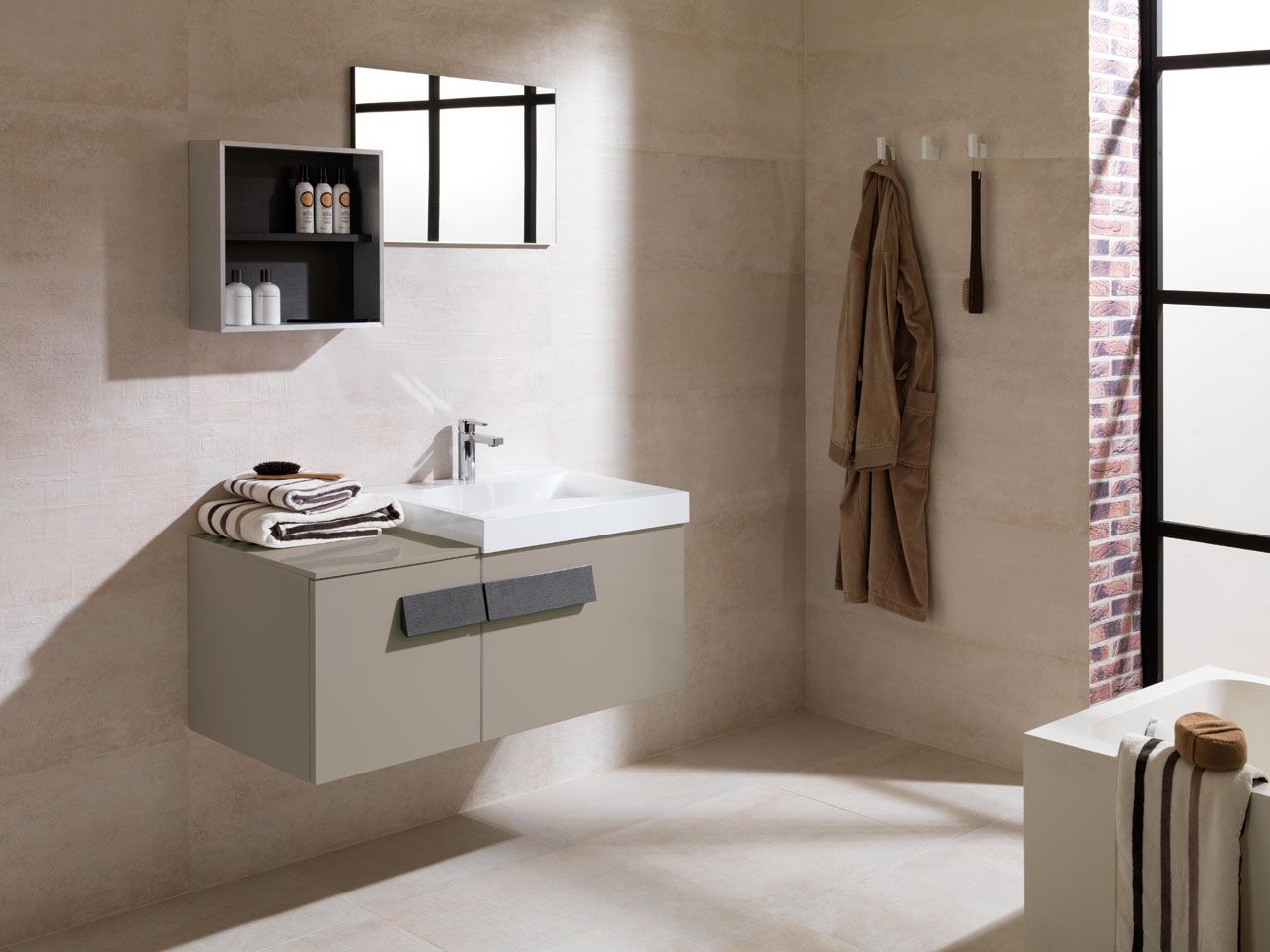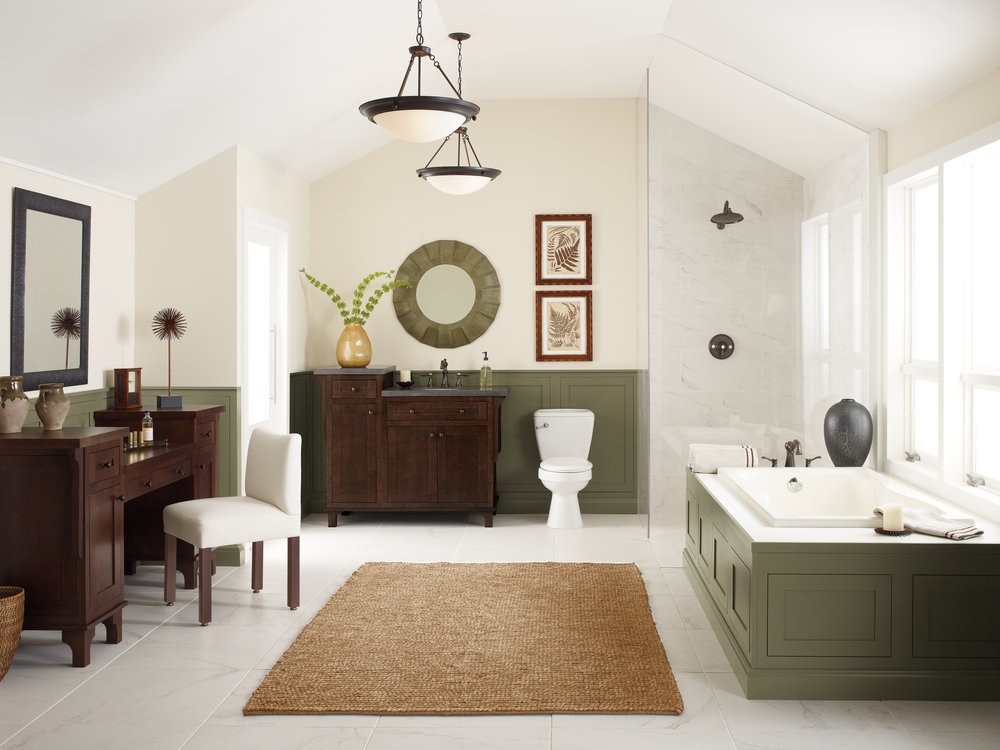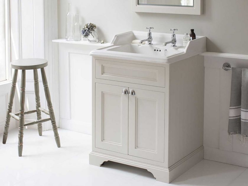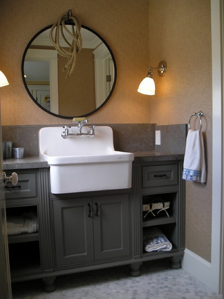 Magnitude Uma pia grande em um gabinete volumoso parecerá grossa no interior de uma pequena banheira, assim como uma pequena pia será "perdida" em um quarto espaçoso.