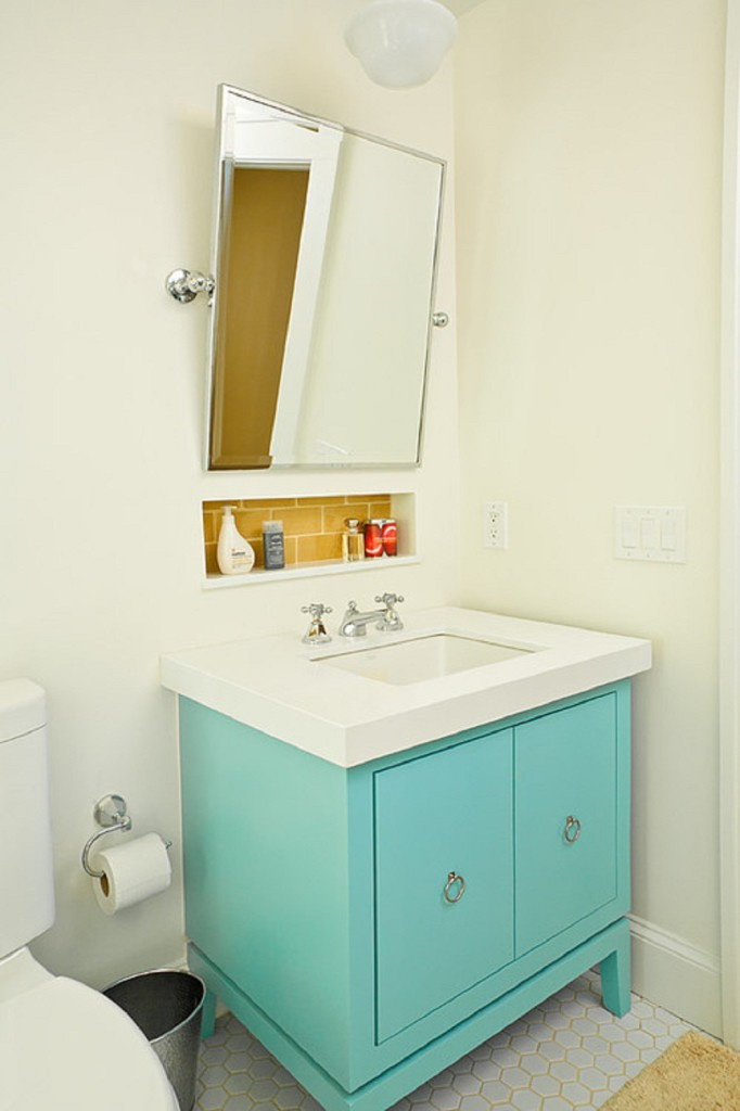 Instale a pia no gabinete do banheiro de três maneiras: