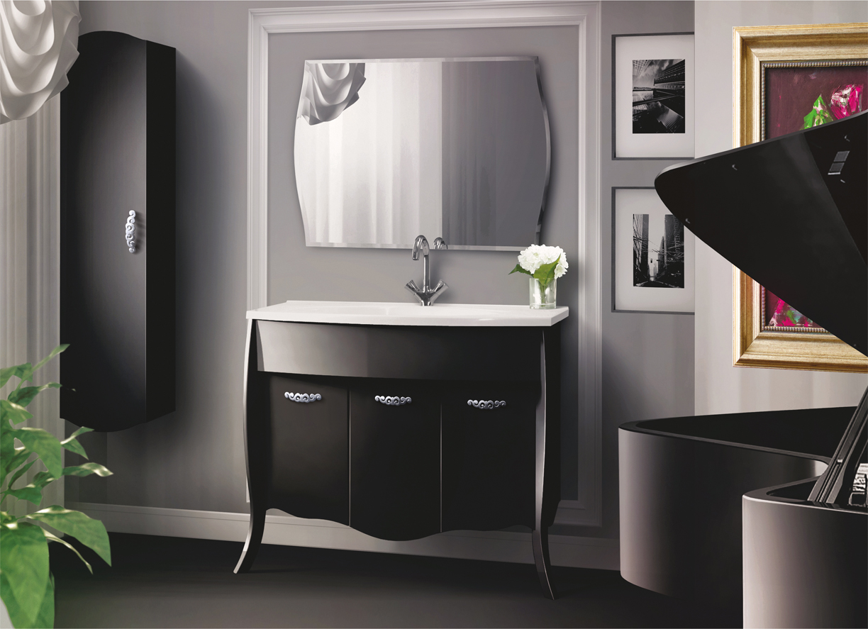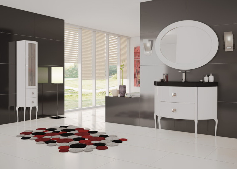 Juntamente com o gabinete e pia muitas vezes comprados o espelho. Colocando-o sobre a pia, os procedimentos de higiene se tornarão muito mais convenientes. O design do espelho selecionado deve corresponder ao design da estrutura: com ou sem moldura, com um padrão ao longo da borda ou uma prateleira abaixo - cabe a você.