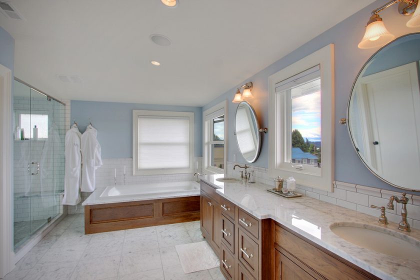- Um plano do banheiro mostrando todos os elementos ajudará a determinar o tamanho ideal do lavatório. Considere todos os detalhes do encanamento e a distância que a porta abrirá para o interior.