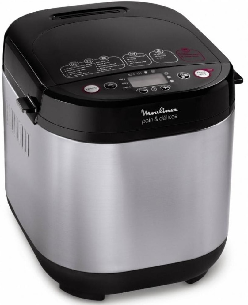 Outro dispositivo que vem com um livro de receitas. O atraso de tempo é uma das funções mais convenientes para recepcionistas. Com o tempo, alguns reclamam que o topo do pão começa a fritar mal. Duas pás para misturar - outra vantagem que os usuários gostam. A única característica é a necessidade de ajustar a quantidade de ingredientes.