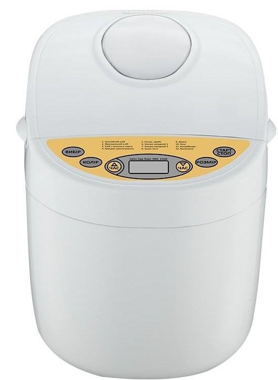 Trabalha com o apoio de 12 programas automáticos. O peso máximo de cozimento atinge 1150 gramas. Há um temporizador atrasando o início. Modo de cozimento rápido, suporte de temperatura - tudo está presente.