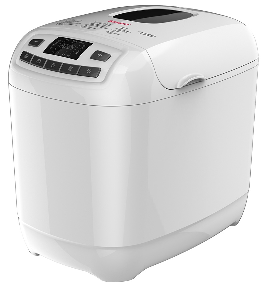 Este modelo cria pães com um peso máximo de até 900 gramas. Mas, de acordo com a experiência prática, 700 gramas são realmente assados. Ou você quer amassar a massa em duas rodadas. Design inovador contribui para o fato de que a máquina de pão não requer muito espaço.