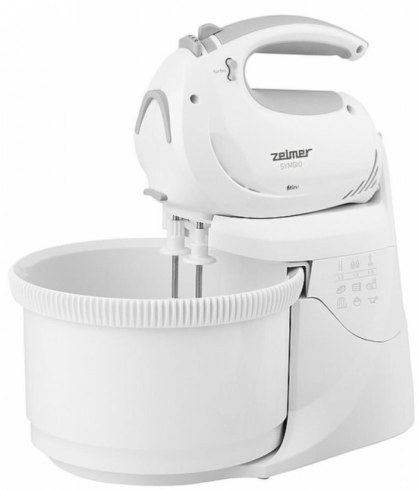 O poderoso misturador estacionário tem um design moderno. Tem uma tigela de metal espaçosa, completa com batedores e ganchos para bater, amassar massa. Uma tampa especial com a capacidade de adicionar ingredientes protege contra respingos e uma espátula adicional servirá para misturar produtos.