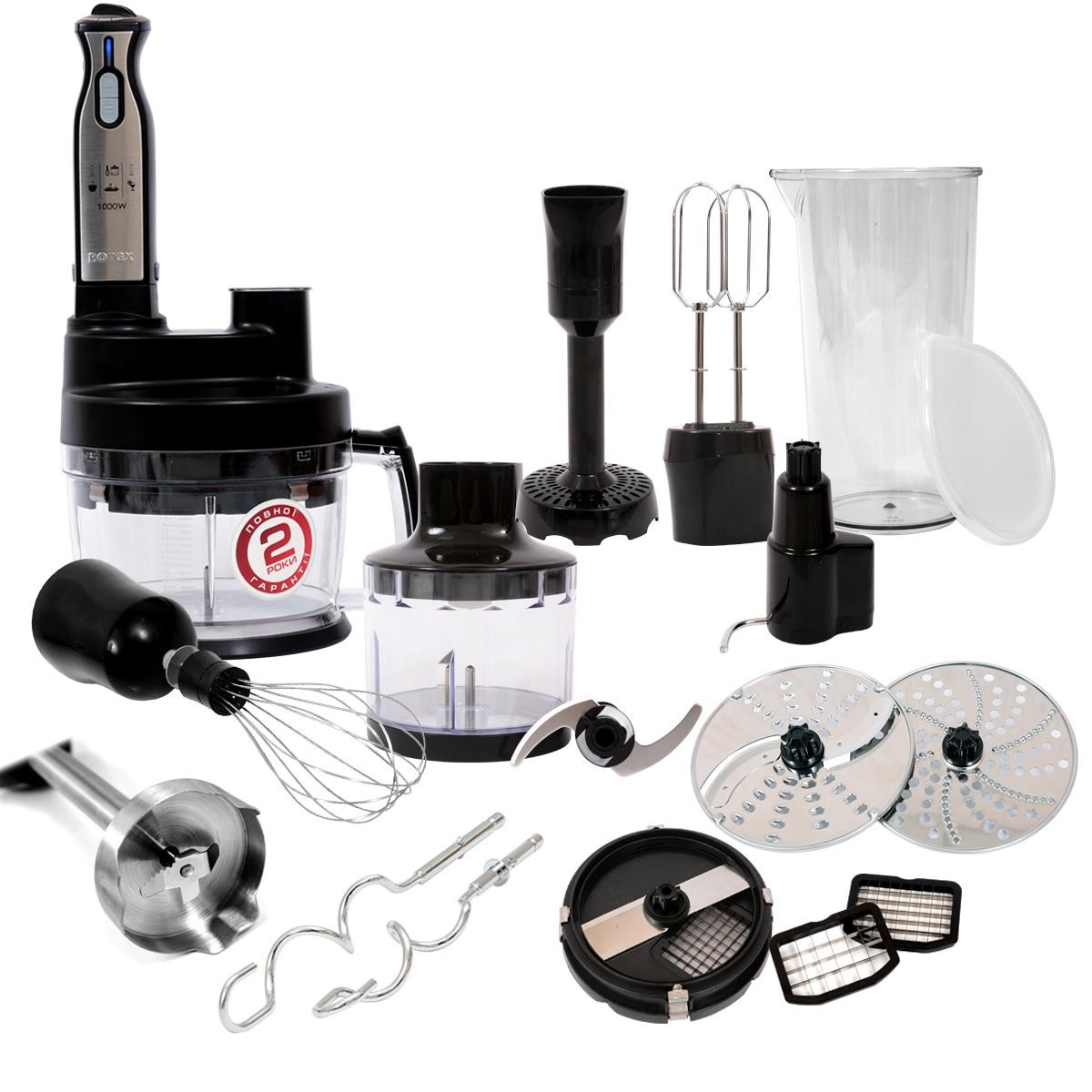 Um poderoso liquidificador multifuncional que facilita a execução de muitas tarefas na cozinha. Tem um punho emborrachado confortável que tornará o processo de cozimento mais confortável. O kit inclui 11 bicos, expandindo significativamente sua funcionalidade. As facas lidam com os produtos mais difíceis, moendo cada peça.