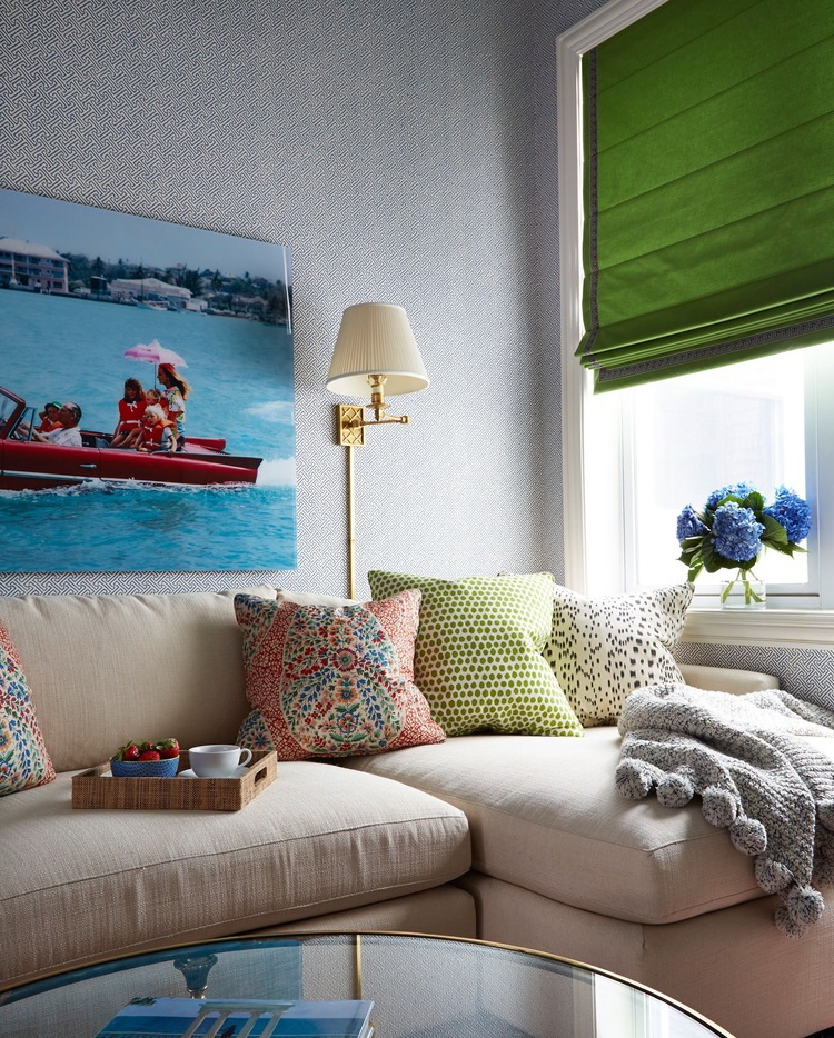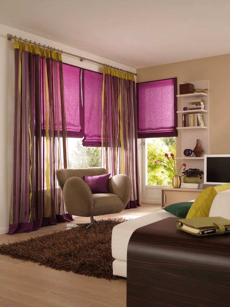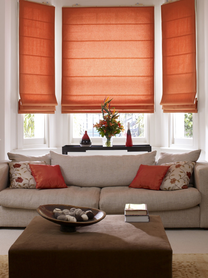 - se em uma configuração de sala e acabamento de superfície domina uma gama monocromática brilhante (branco, bege, cinzento, verde claro, creme), é melhor decorar as janelas com cortinas romanas com padrões brilhantes (azulturquesa vermelho, verde, laranja). O contraste nas cores é desejável para uso em cozinhas, salas de estar, crianças quartos. Um divertido jogo de cores irá adicionar ao espaço vivacidade, frescura, originalidade;