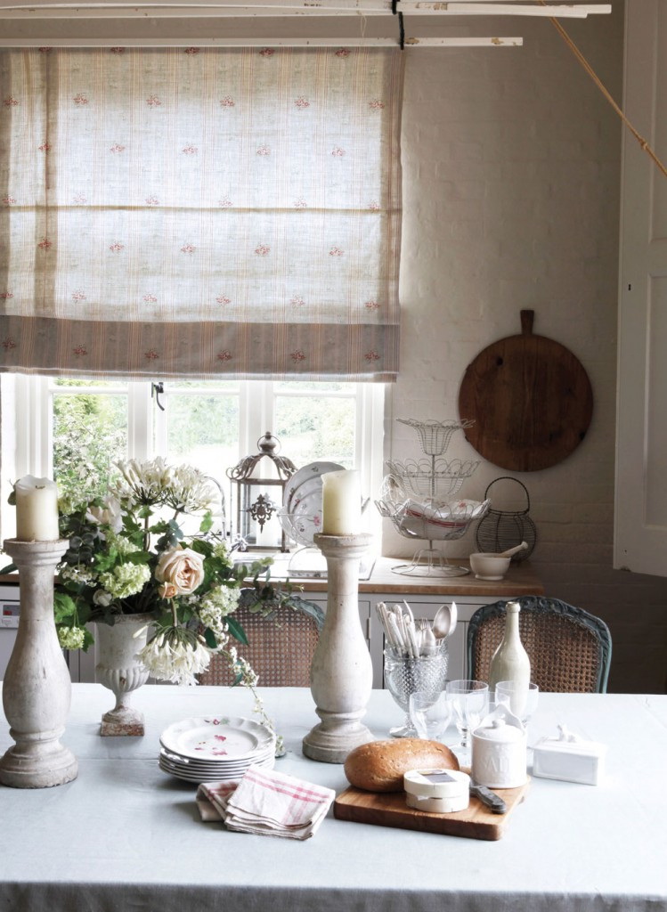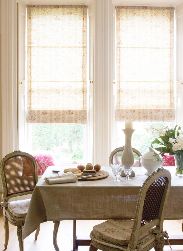 - Ornamentos florais nas cortinas eles chamam atenção para as janelas e, discretamente, trazem frescor, bom humor à atmosfera. As persianas romanas coloridas criam um conforto caseiro na cozinha, no quarto ou no berçário. O melhor de tudo, padrões florais de tamanho médio se encaixam no estilo rústico e tranquilo do provençal.