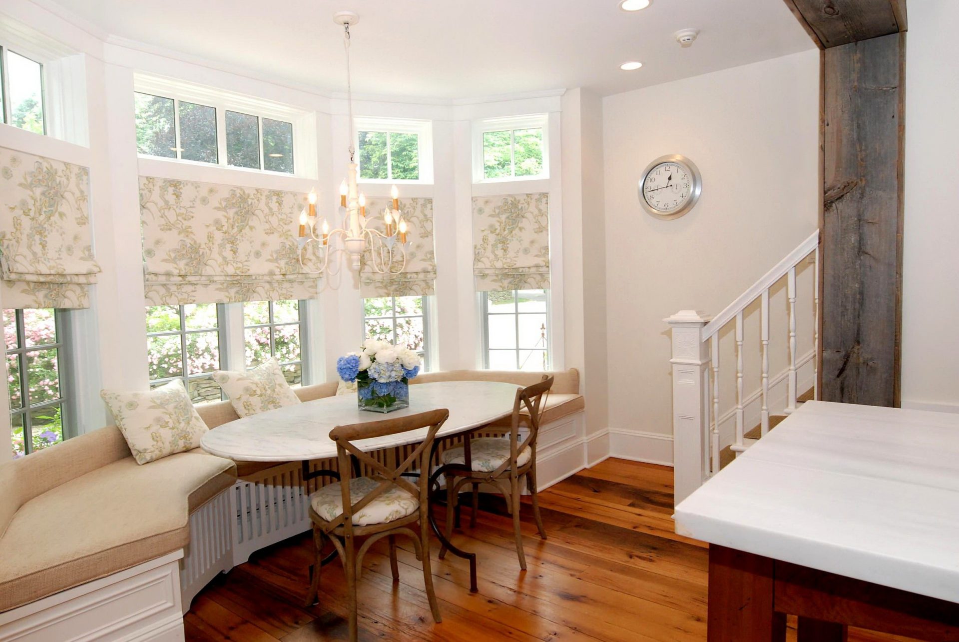 - versão sem moldura - pano liso dobra-se uniformemente ao longo da borda inferior ao levantar.Esta decoração de janela parece simples e se encaixa bem no interior de estilos rústicos (provença, música country);