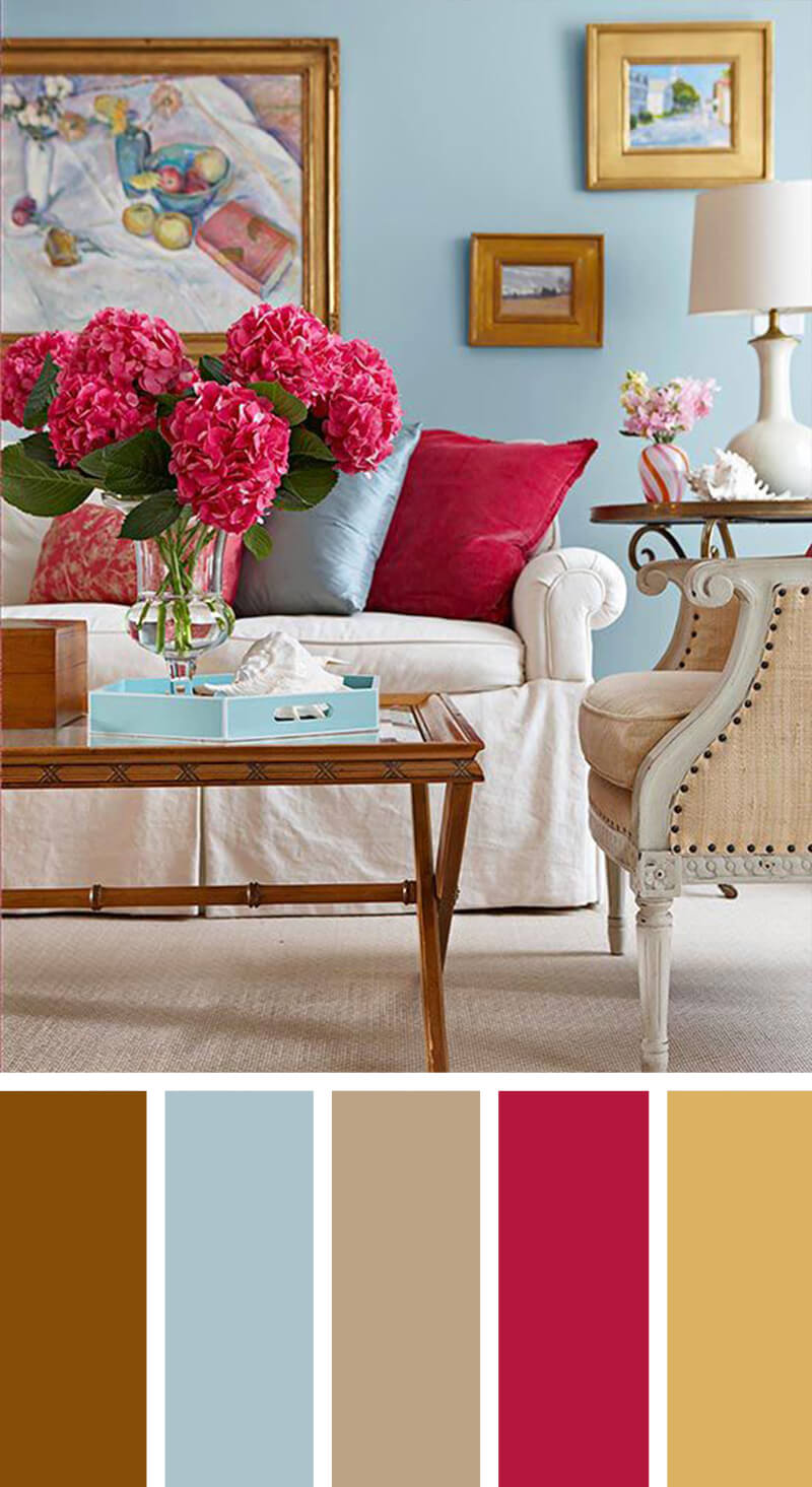 Não é necessário combinar estas combinações apenas na decoração da sala. Pode ser decorado em branco ou bege, enquanto móveis e acessórios se destacam.