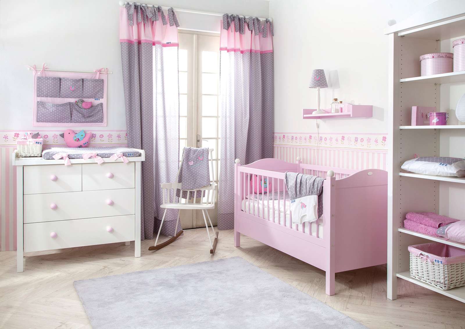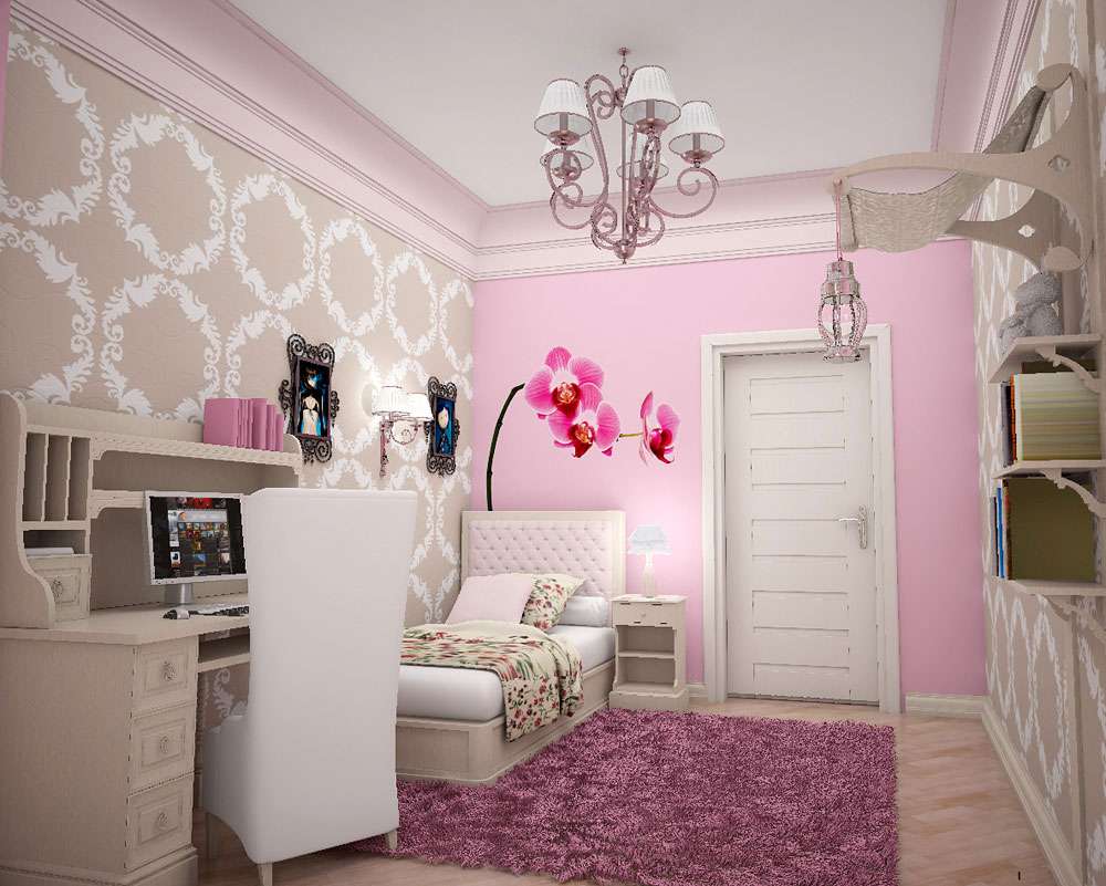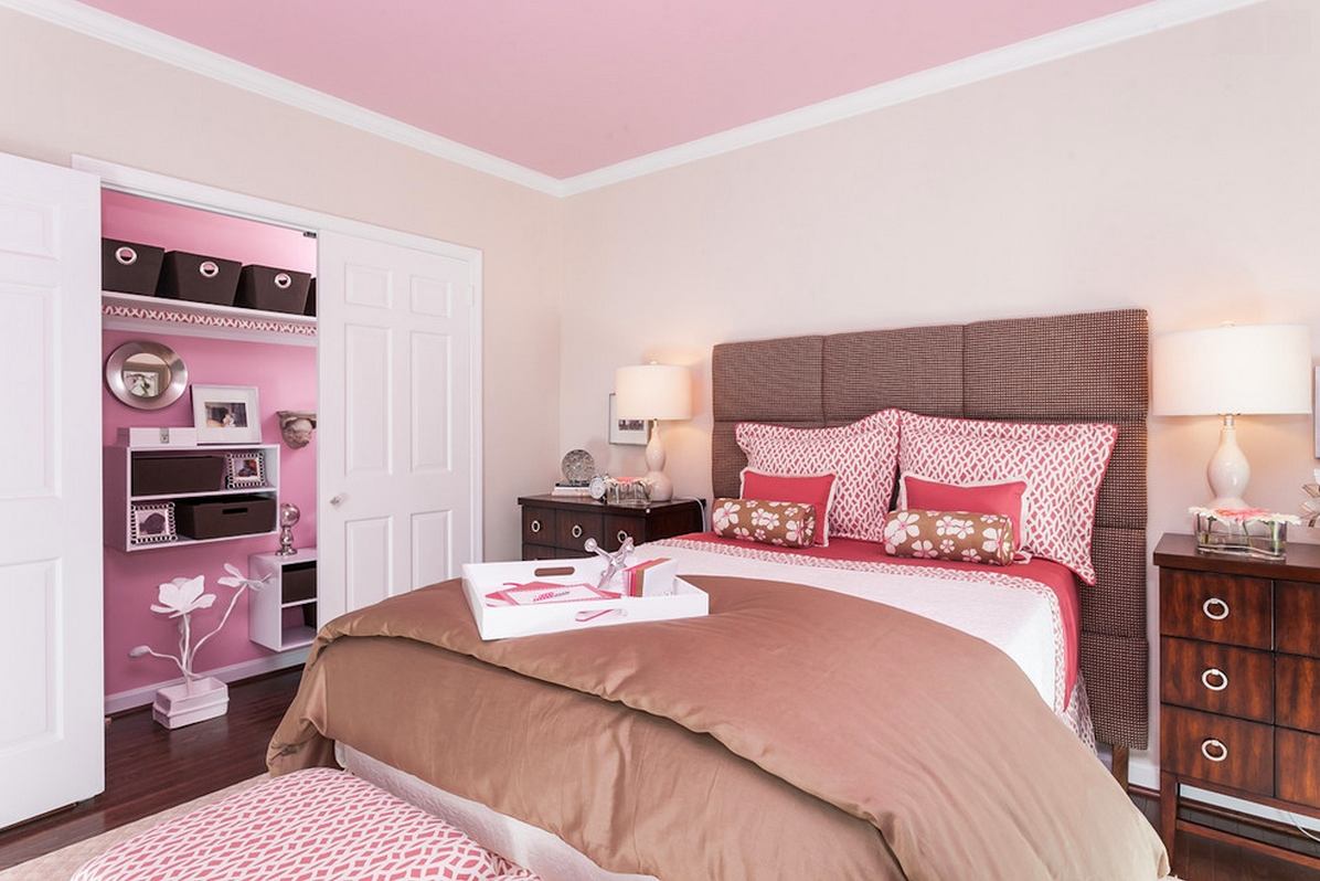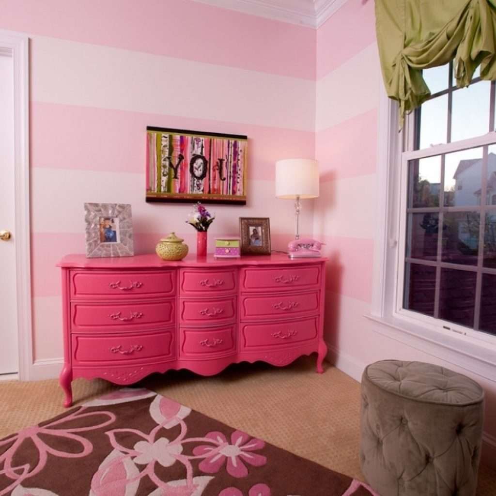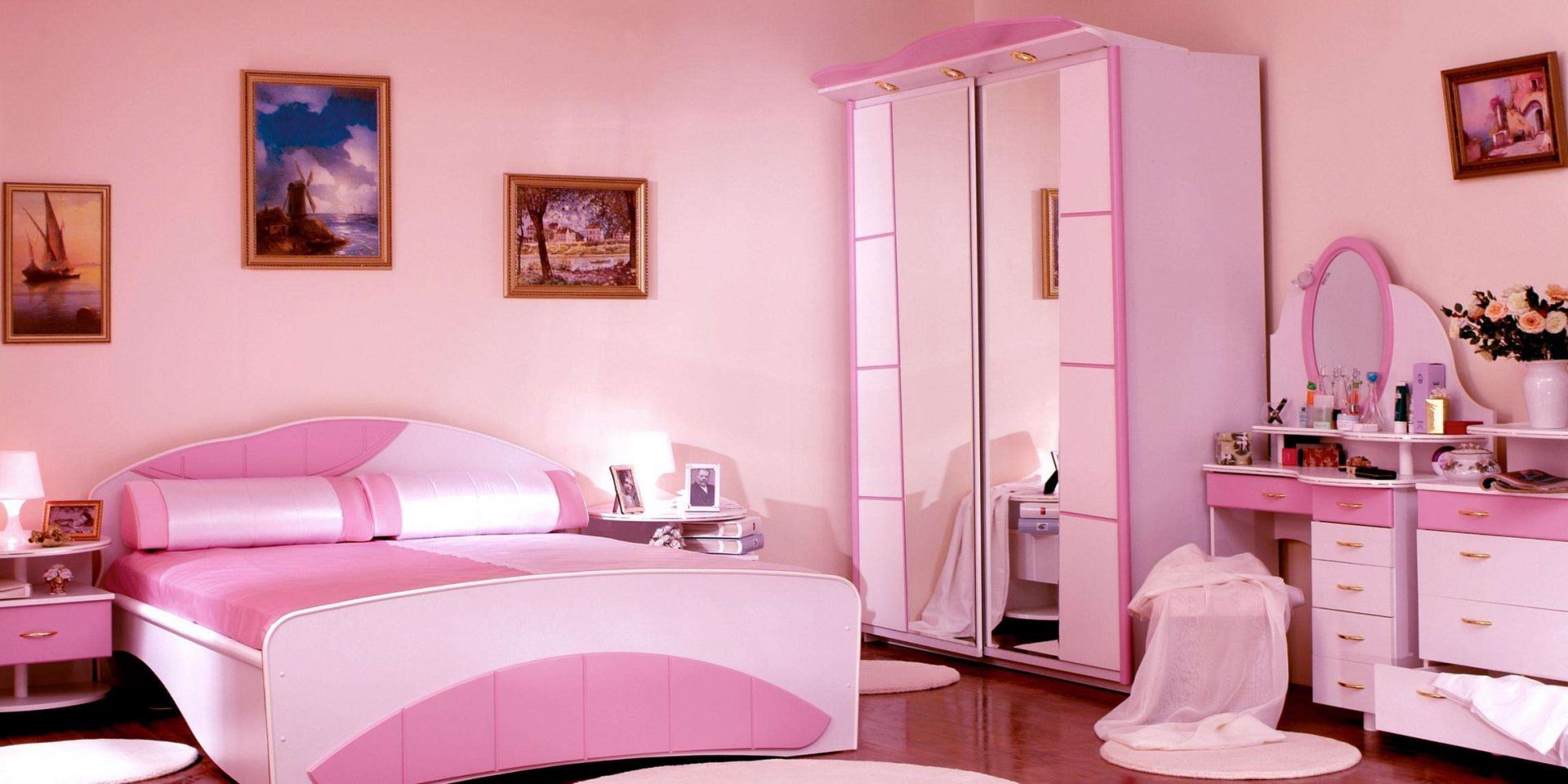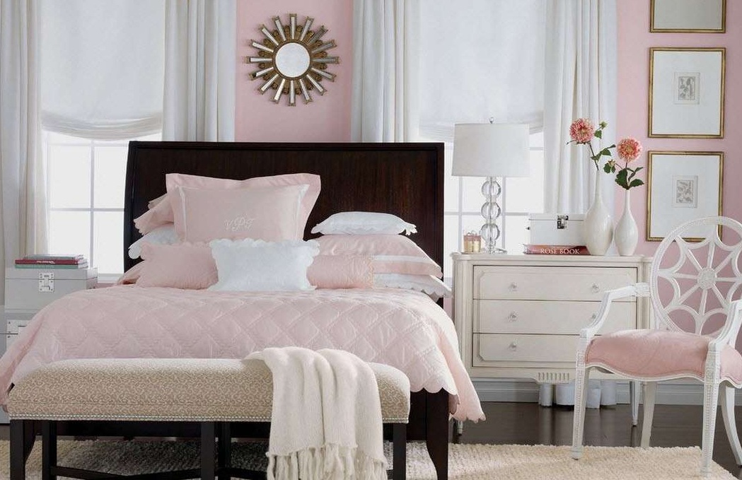 Mobiliário de cor de areia fica bem na faixa rosa. Se o quarto é pequeno e a sua decoração é feita em rosa, os produtos brancos serão a melhor escolha.