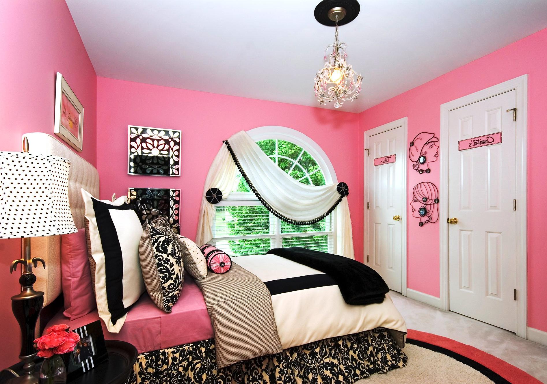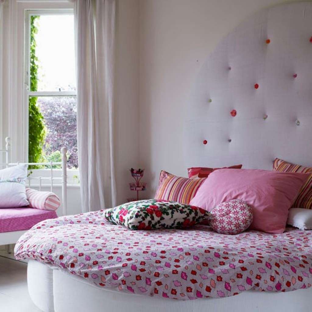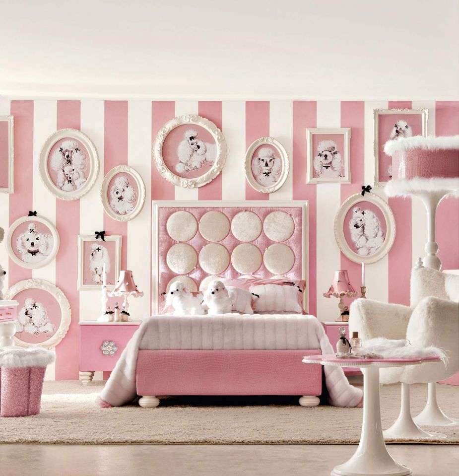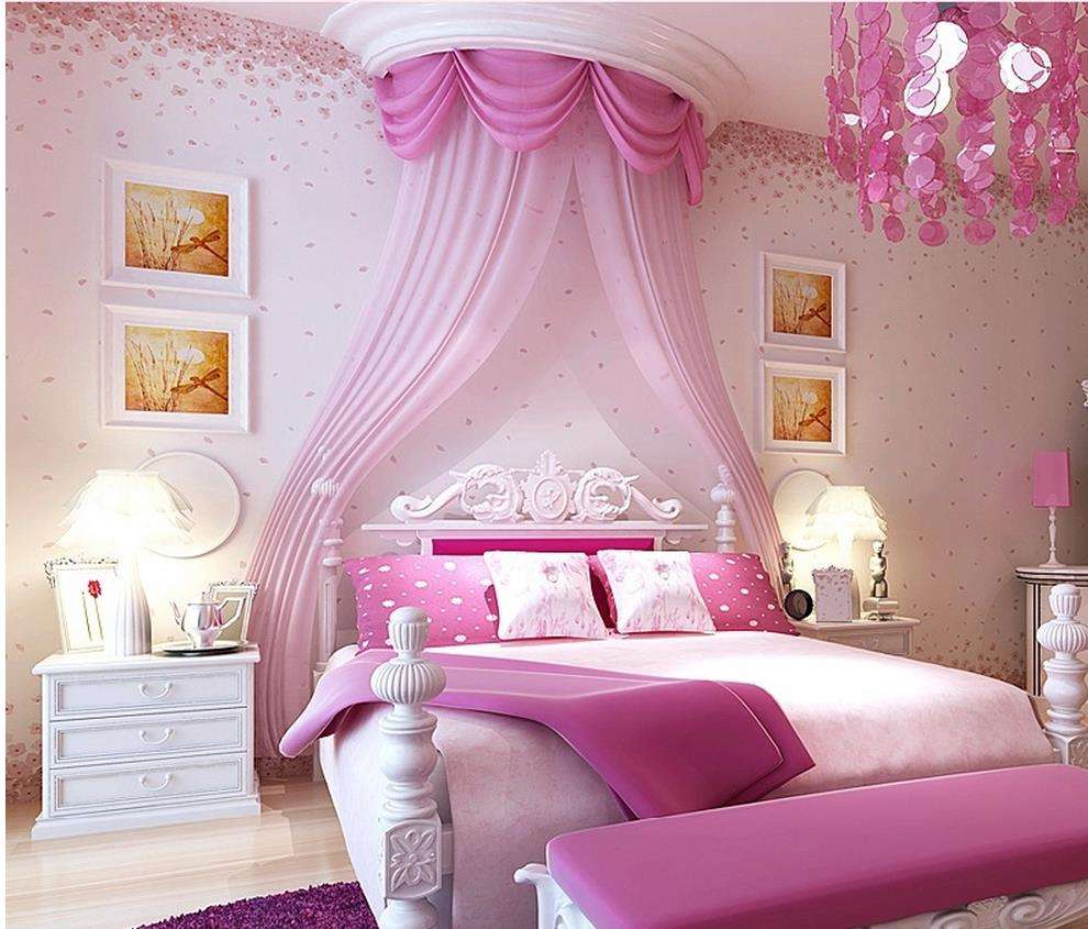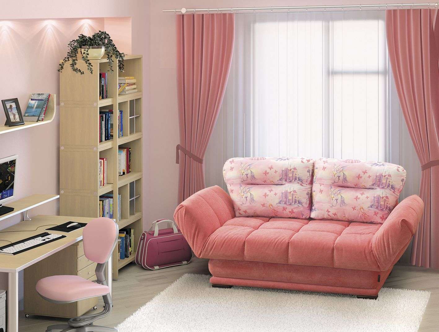 Mobiliário de cor de areia fica bem na faixa rosa. Se o quarto é pequeno e a sua decoração é feita em rosa, os produtos brancos serão a melhor escolha.