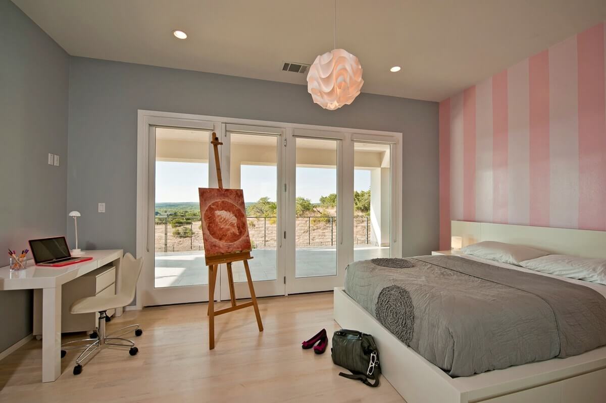 - Moderno. Qualquer tom de rosa irá atender este estilo, que pode ser usado como um acento. Combine-o com fachadas prateadas e brancas.