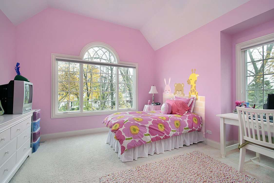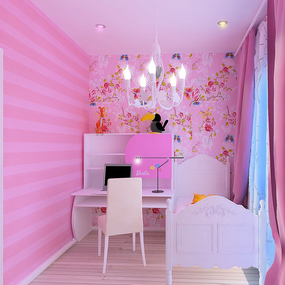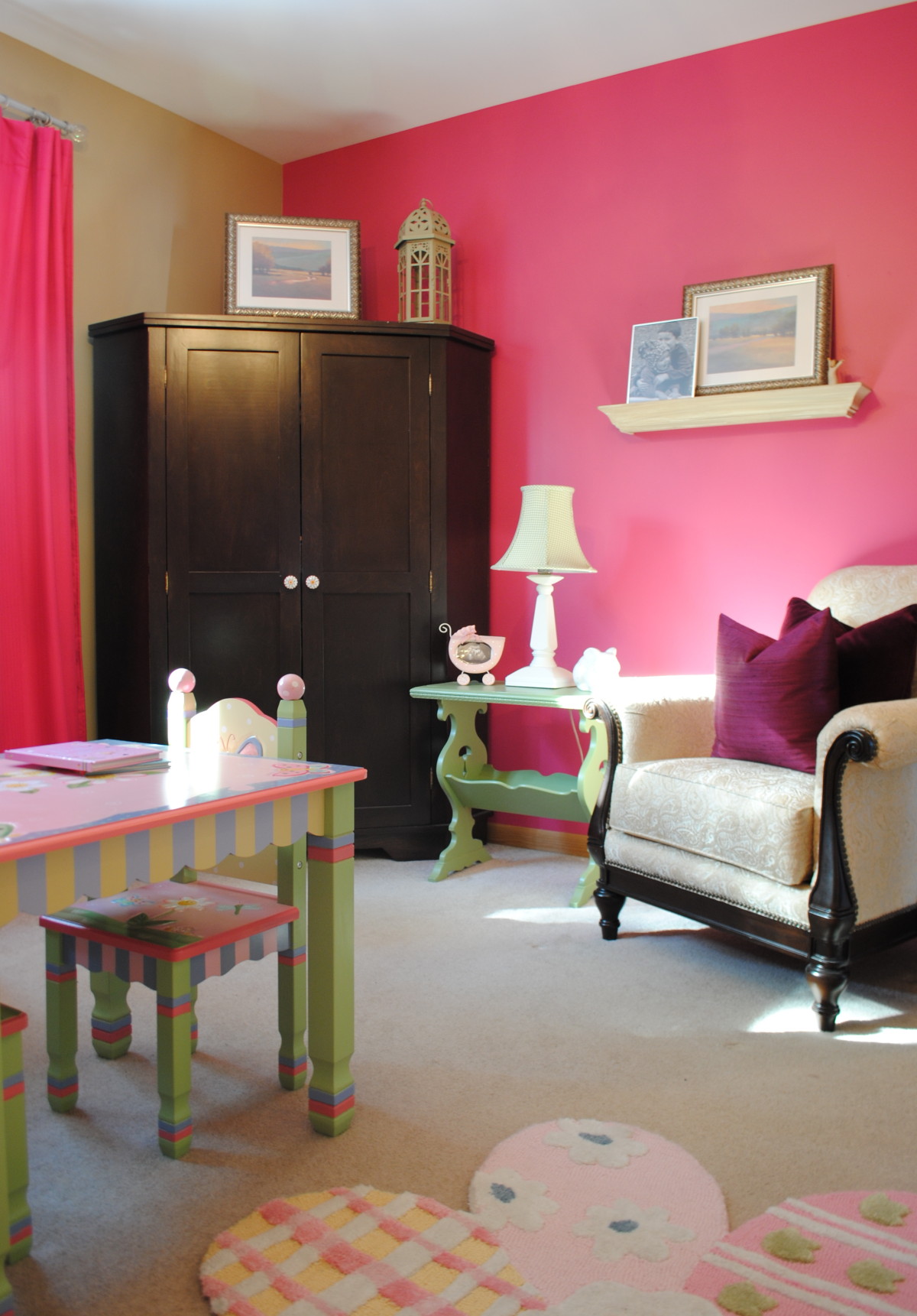 Sala de crianças cor de rosa em harmonia com os seguintes "amigos":