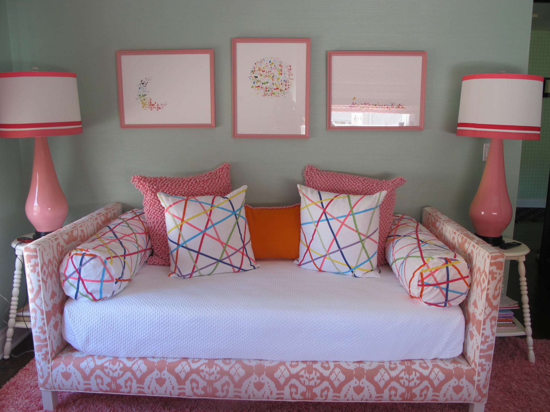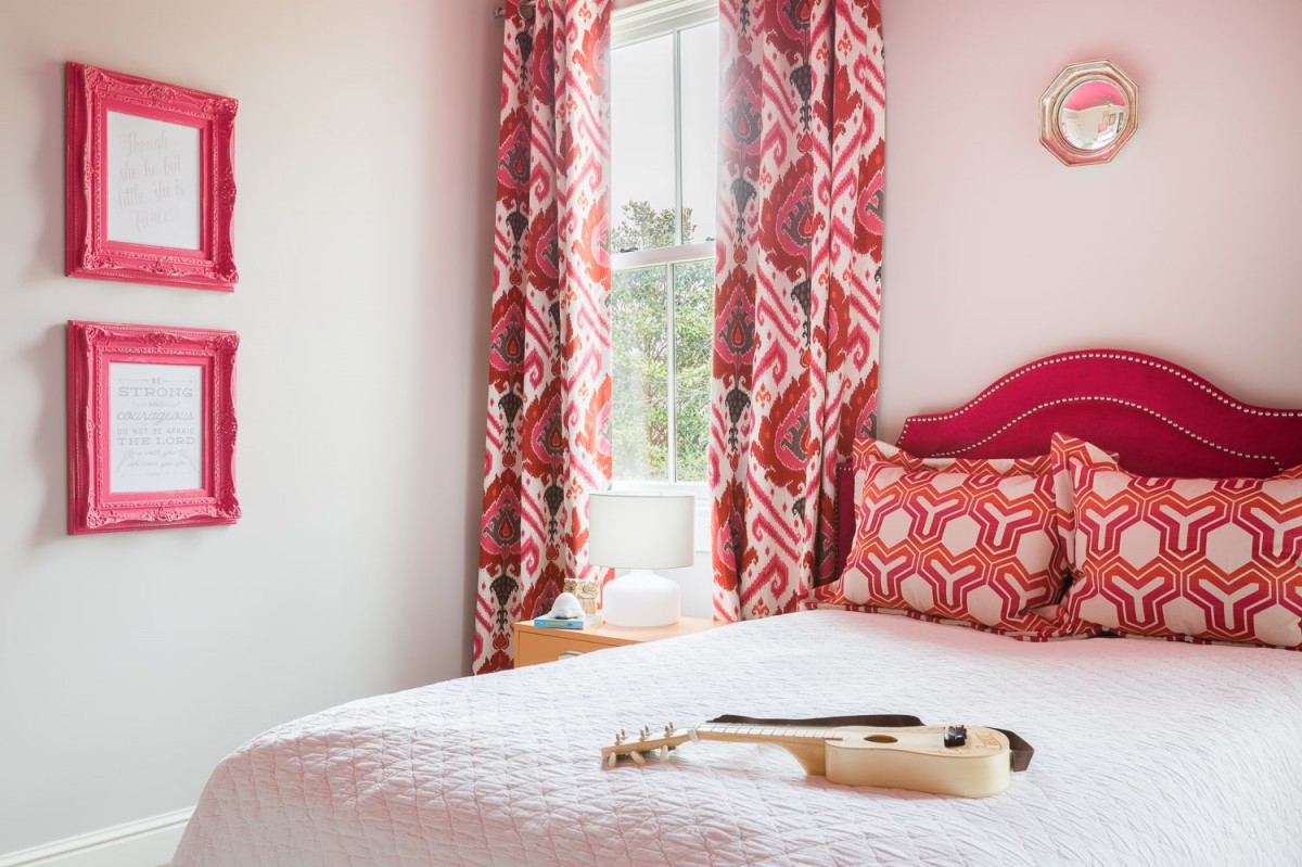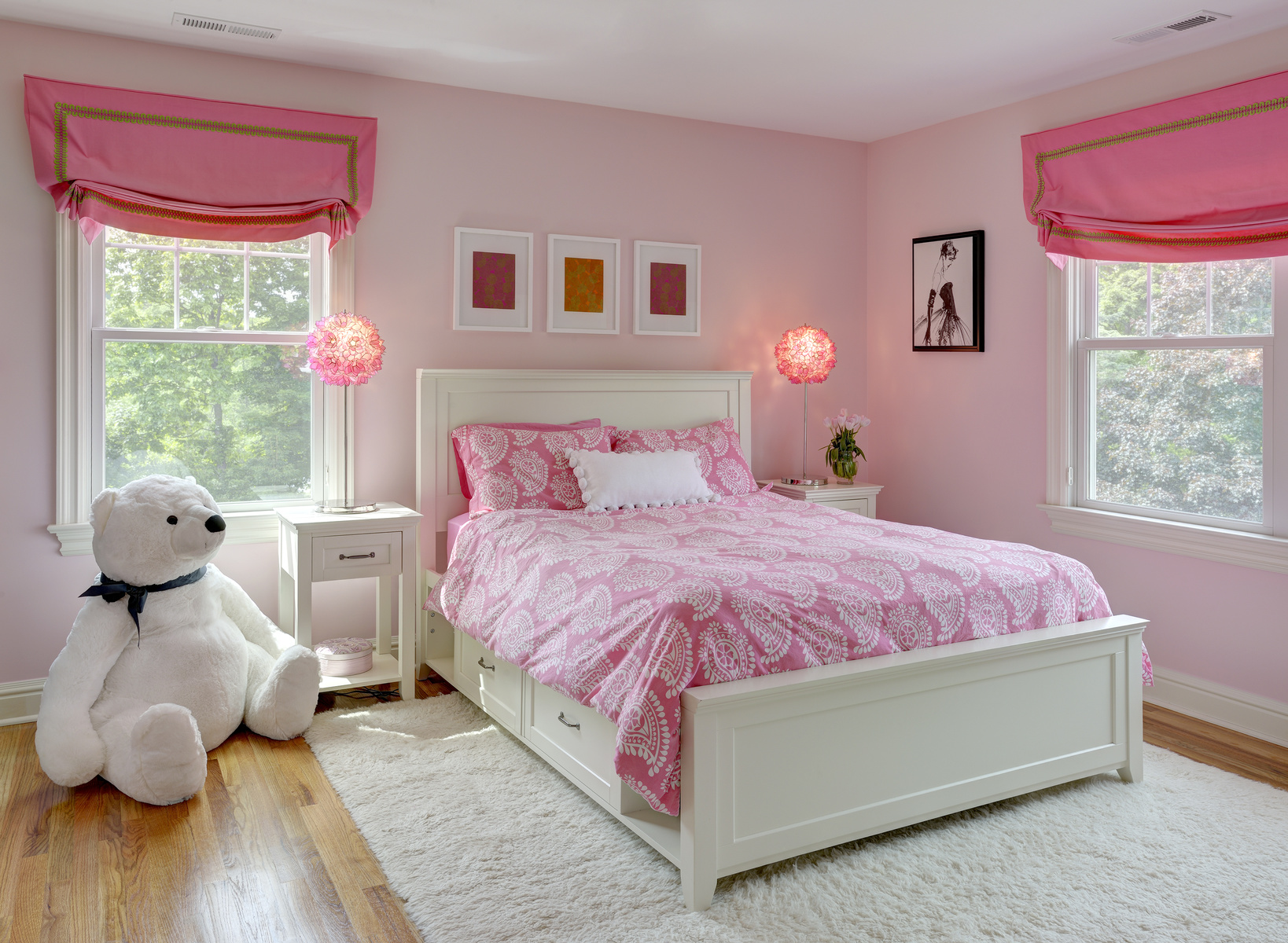 Sala de crianças cor de rosa em harmonia com os seguintes "amigos":