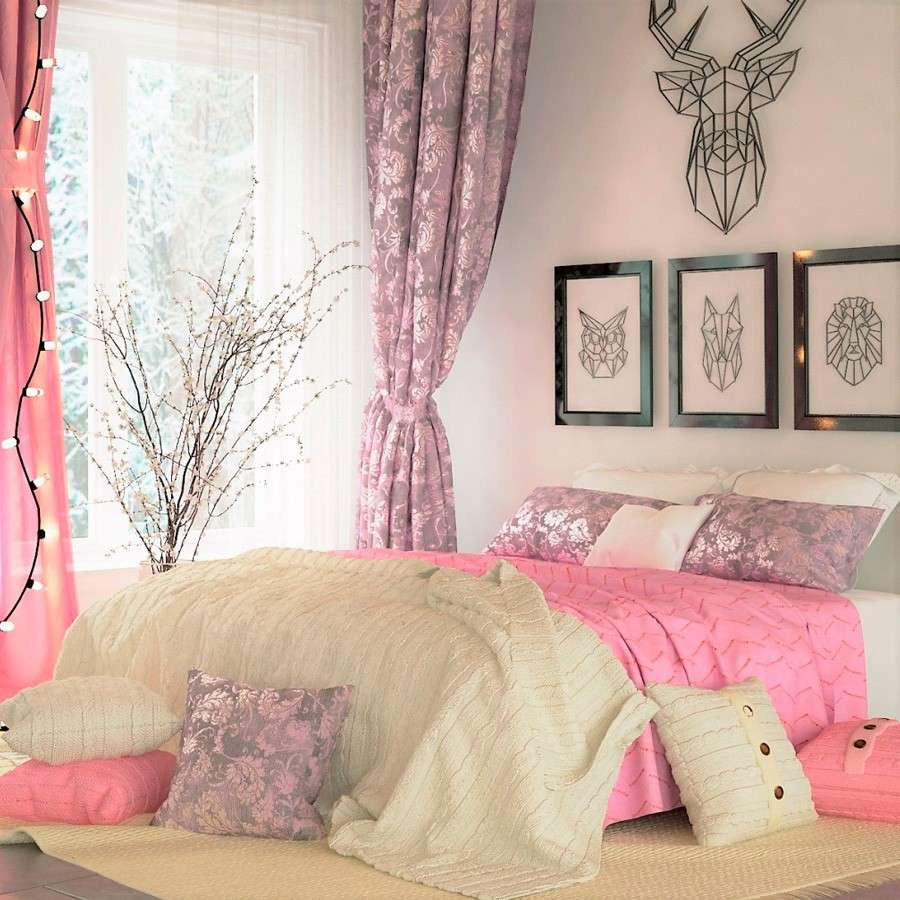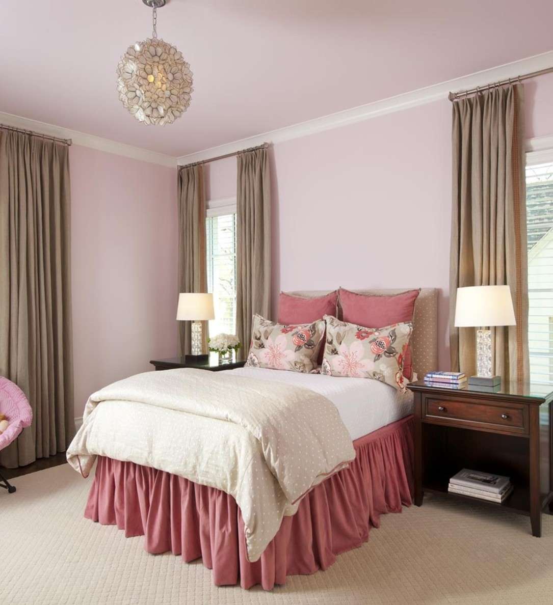 - Temperatura de cor. Há uma incrível quantidade de belos tons - de rosa pálido e rosa cinza a lavanda e coral. A cor do chá rosa ou cor de salmão ajudará a tornar o quarto mais confortável e quente, enquanto partes da decoração em um tom de fúcsia irá energizá-lo. Assim, tudo depende do seu objetivo final.