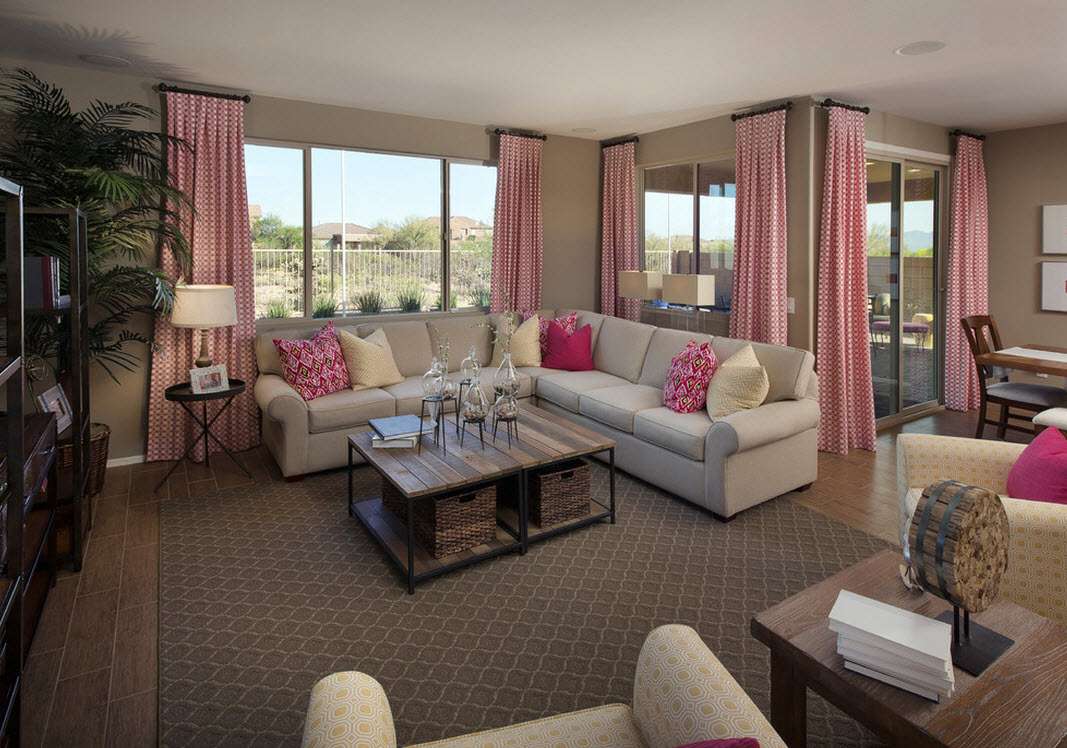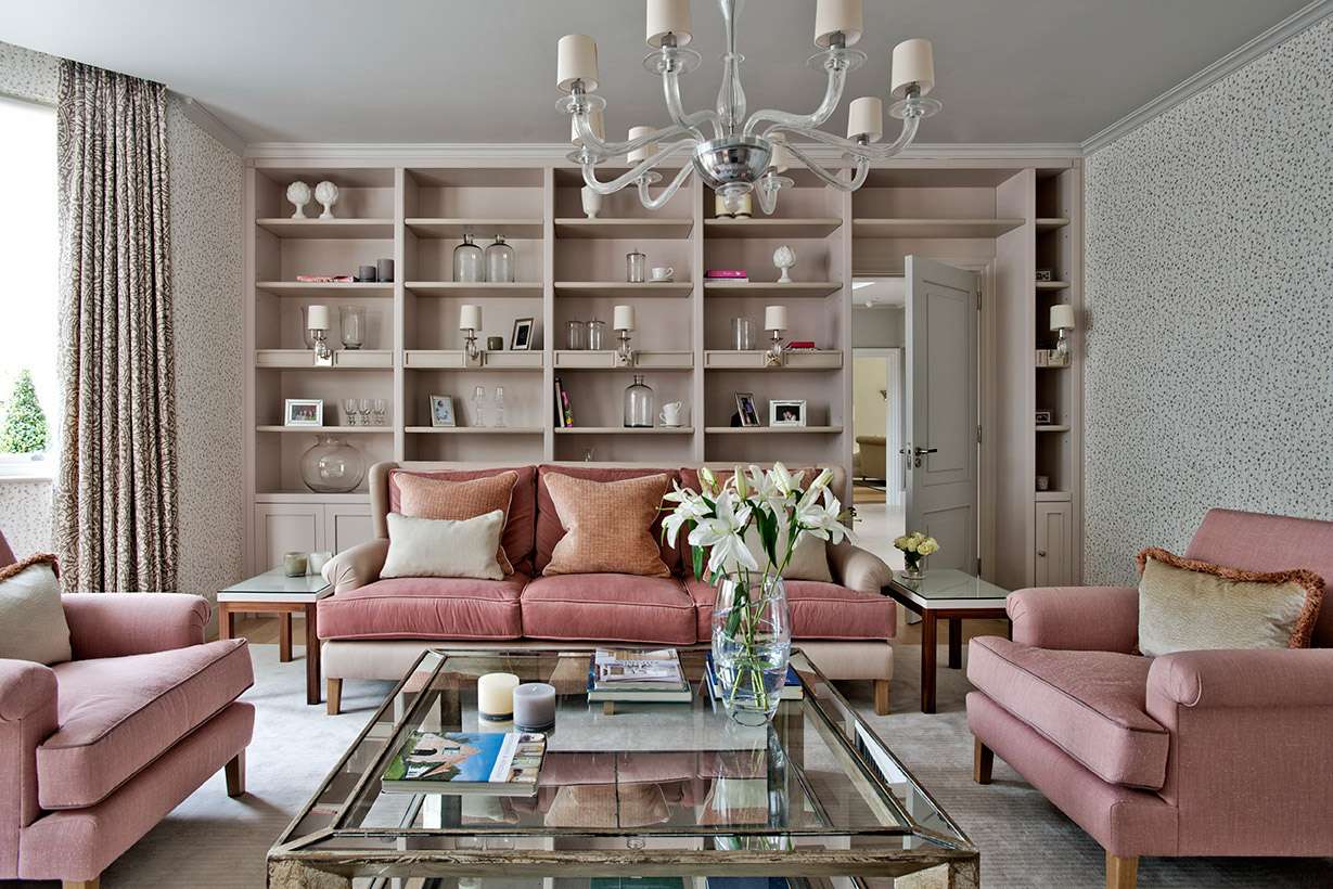 O rosa, diluído em cinza ou marrom, privará o interior da feminilidade excessiva e tornará a sala verdadeiramente elegante.