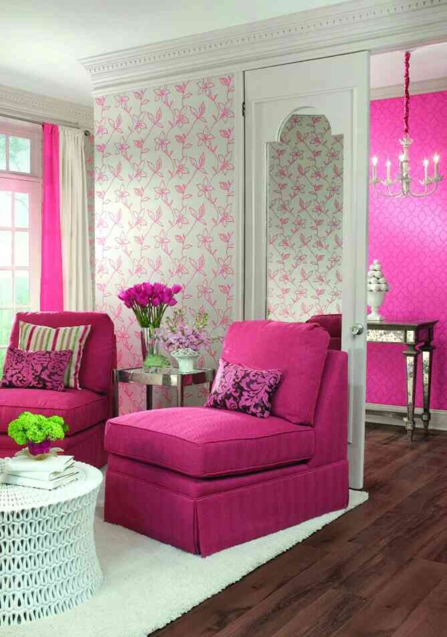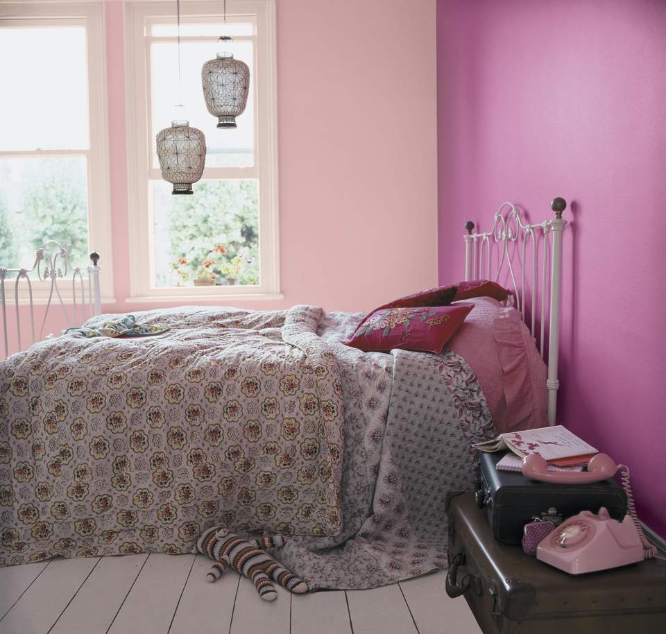 - Fúcsia - cor brilhante e ousada, que recai sobre o gosto da maioria dos adolescentes. Parece bom em minimalista O interior joga em uma cor contrastante. A abundância de fúcsia não ajudará a alcançar a harmonia interior e relaxar depois do trabalho ou estudo.