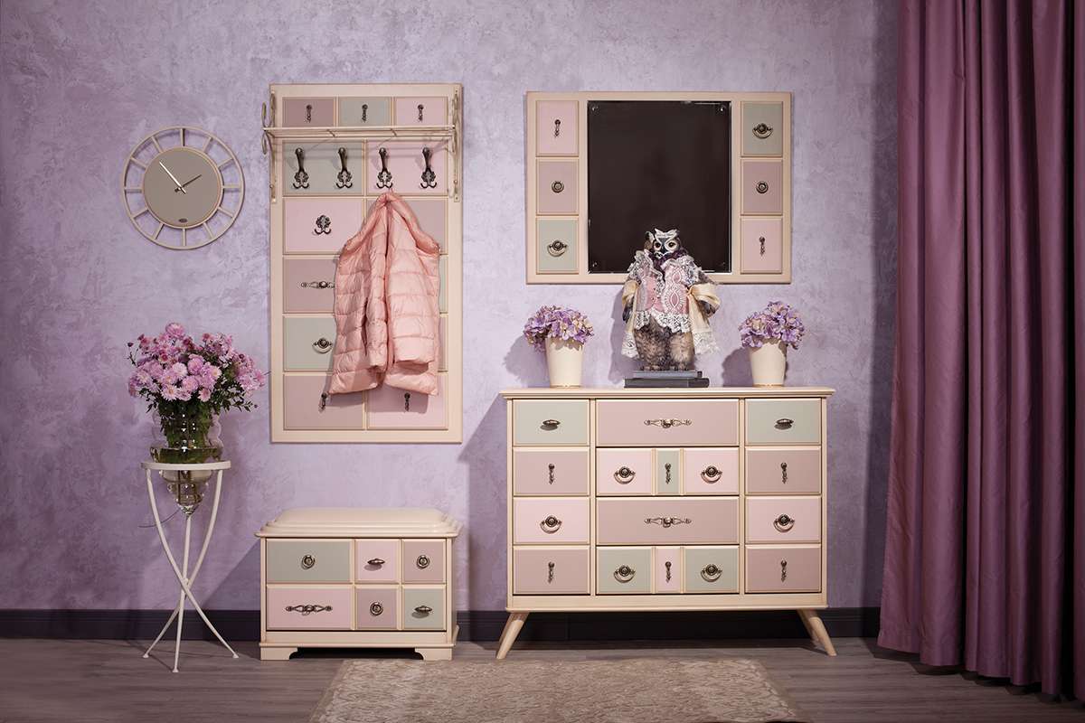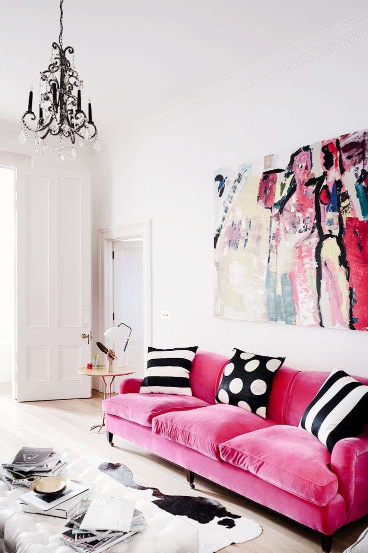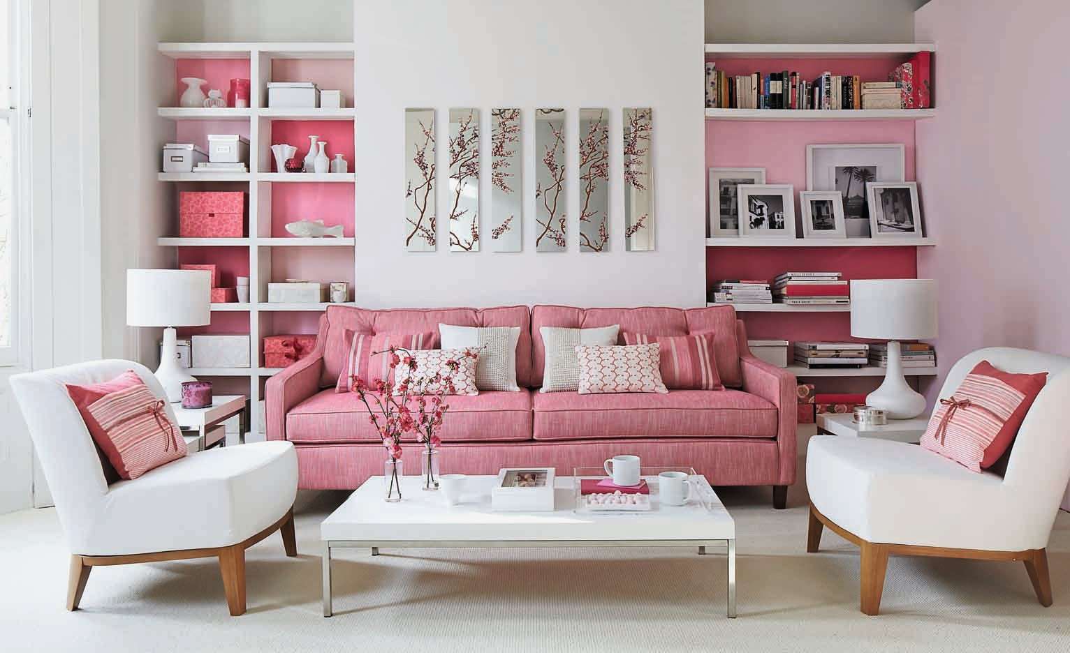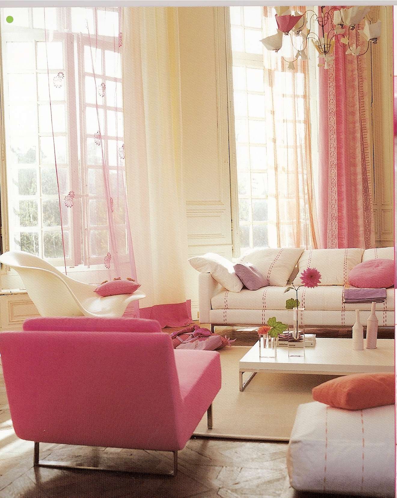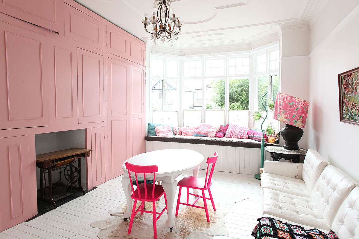 - Móveis rosa parecerão românticos contra as paredes claras.