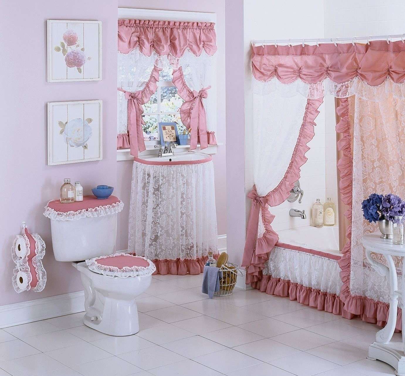 Uma cortina espessa para o chuveiro com listras ou um padrão de branco-rosa-neve complementará a gama global.