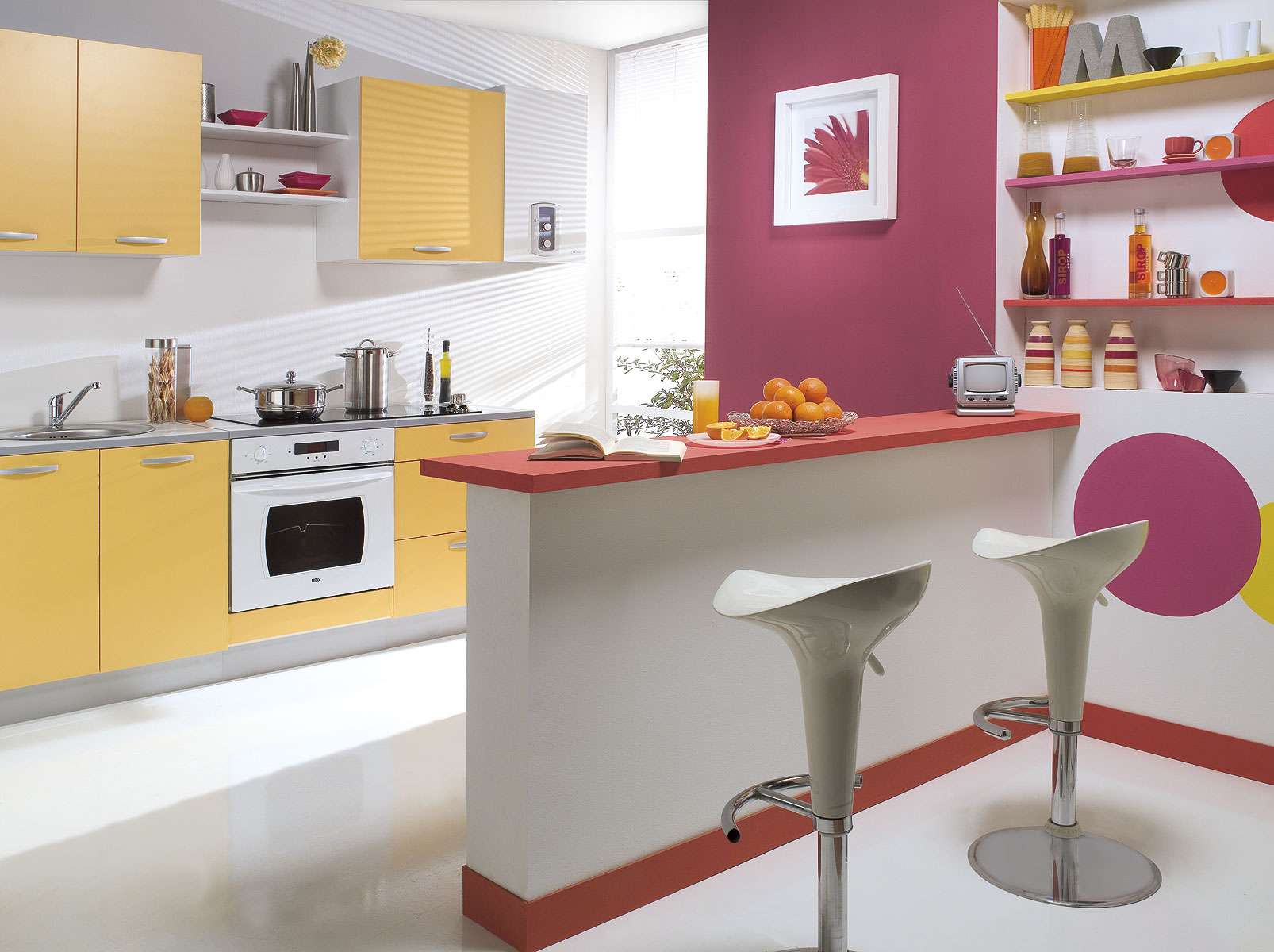 - Móveis. A fachada brilhante de uma cor carmesim brilhante parece extravagante e vai caber no estilo da cozinha alta tecnologia ou moderno.