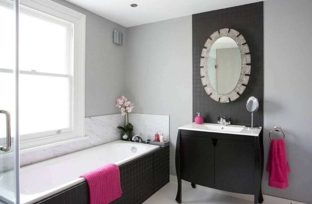 Um tom cinza ou prateado é um tom universal que complementa com sucesso as cores básicas do banheiro. Ele a tornará nobre e elegante.