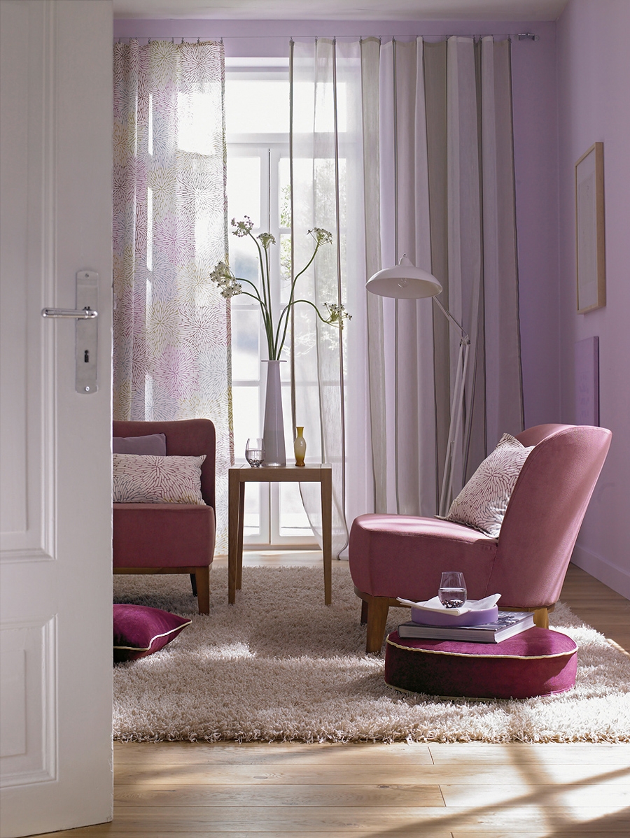 Opção imprevisível, afinando os habitantes do clima romântico. Os tons enchem o quarto com mistério e encanto. No entanto, por vezes, esta gama reduz a intensidade dos raios solares, porque é recomendado para ser usado apenas em quartos com boa iluminação natural.