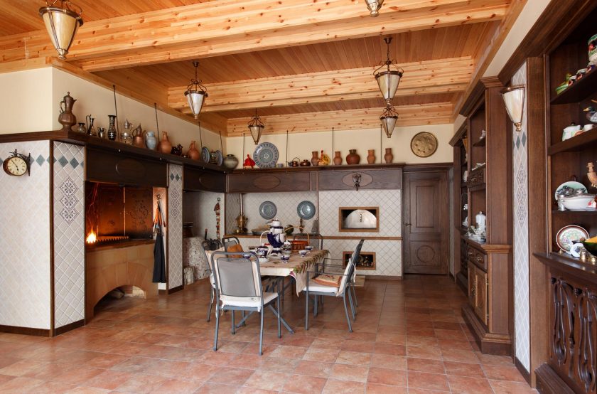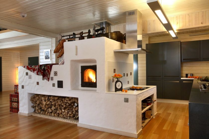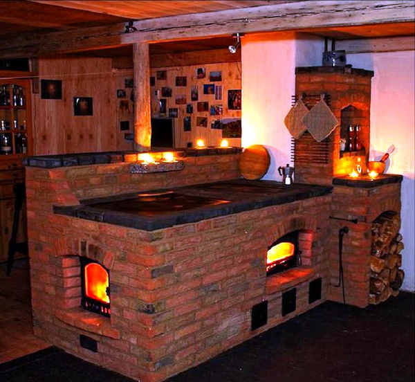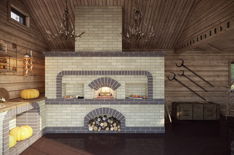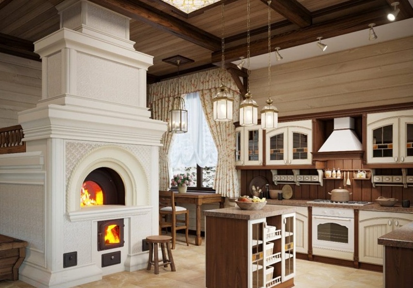 A escolha do fogão russo para a cozinha depende do tamanho da sala. Se for grande, você pode instalar um forno grande que será multifuncional: