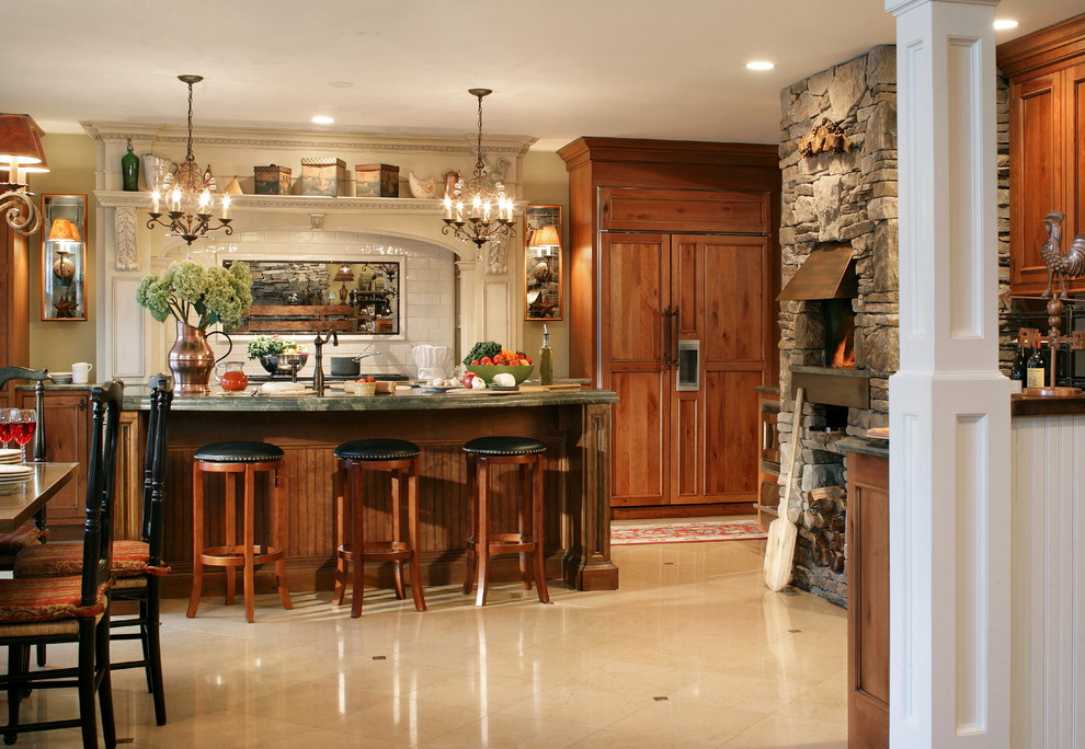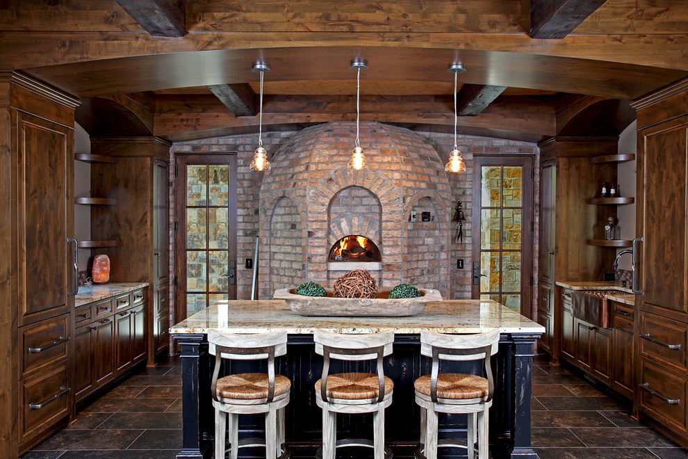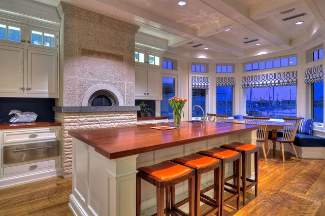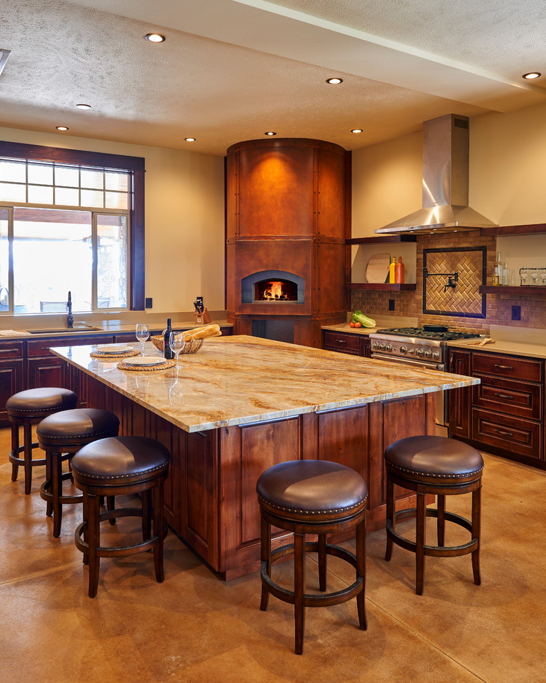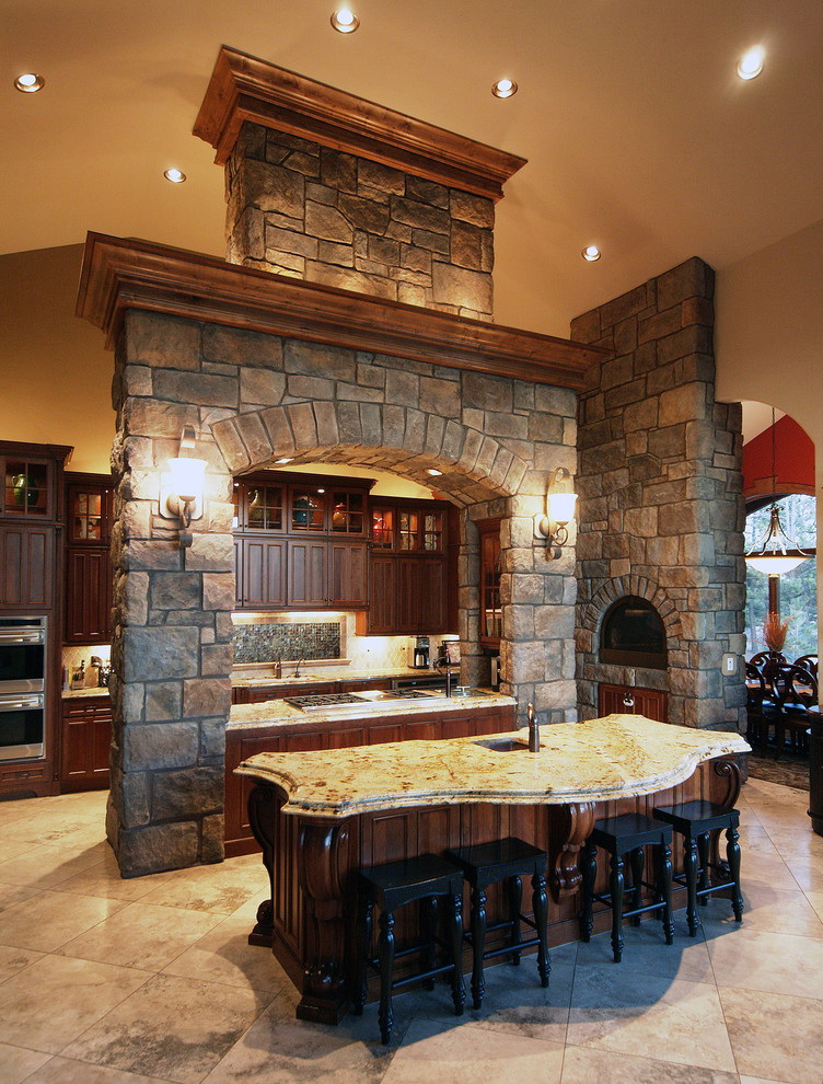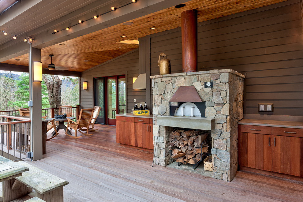 Este design é mais adequado para casas em estilo rústico. Estes podem ser edifícios de uma casa de madeira, madeira ou ter um interior apropriado. O estilo clássico é um forno de tijolos, decorado com elementos decorativos.