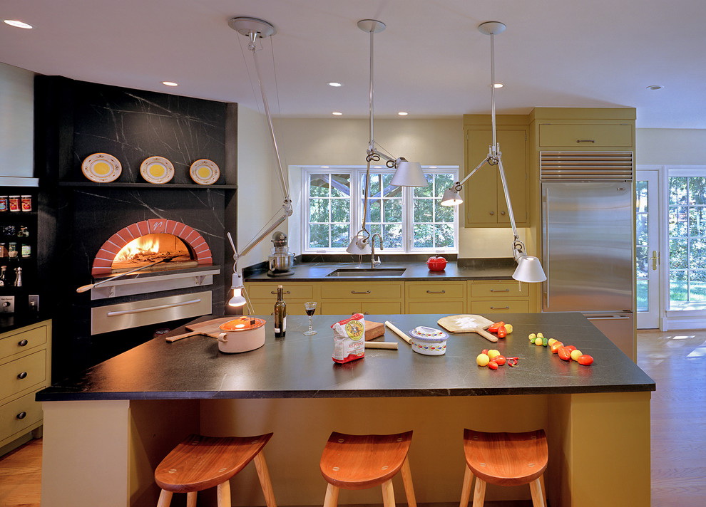 - equipado com piso de cozinha. Esses projetos são multifuncionais e podem substituir qualquer superfície de cozimento e fogão;
