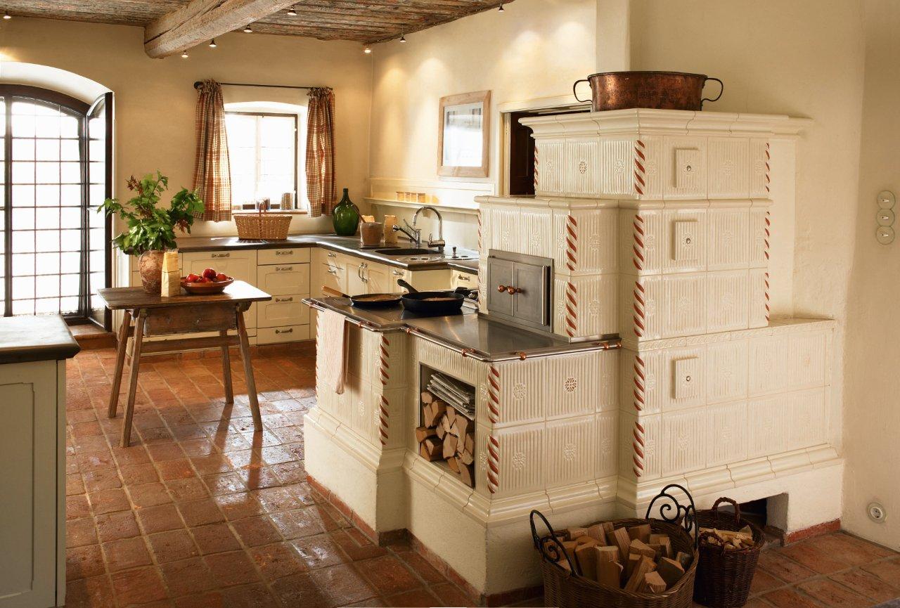 - Fogão russo na cozinha não deve ser sobrecarregado com elementos decorativos excessivos. Ela mesma será um sotaque brilhante.