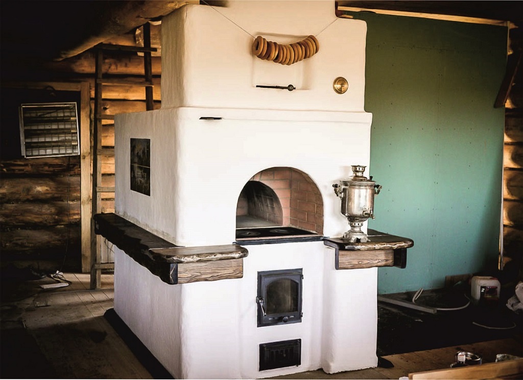 Este modelo tem um tamanho bastante compacto. Não possui equipamento adicional, como uma placa de fogão, uma grande espreguiçadeira ou a capacidade de observar o efeito da chama. Esta opção é adequada para uma pequena cozinha. Tal forno é decorado com elementos decorativos associados à Rússia. Ela parece leve e charmosa em uma casa de madeira. Características especiais: