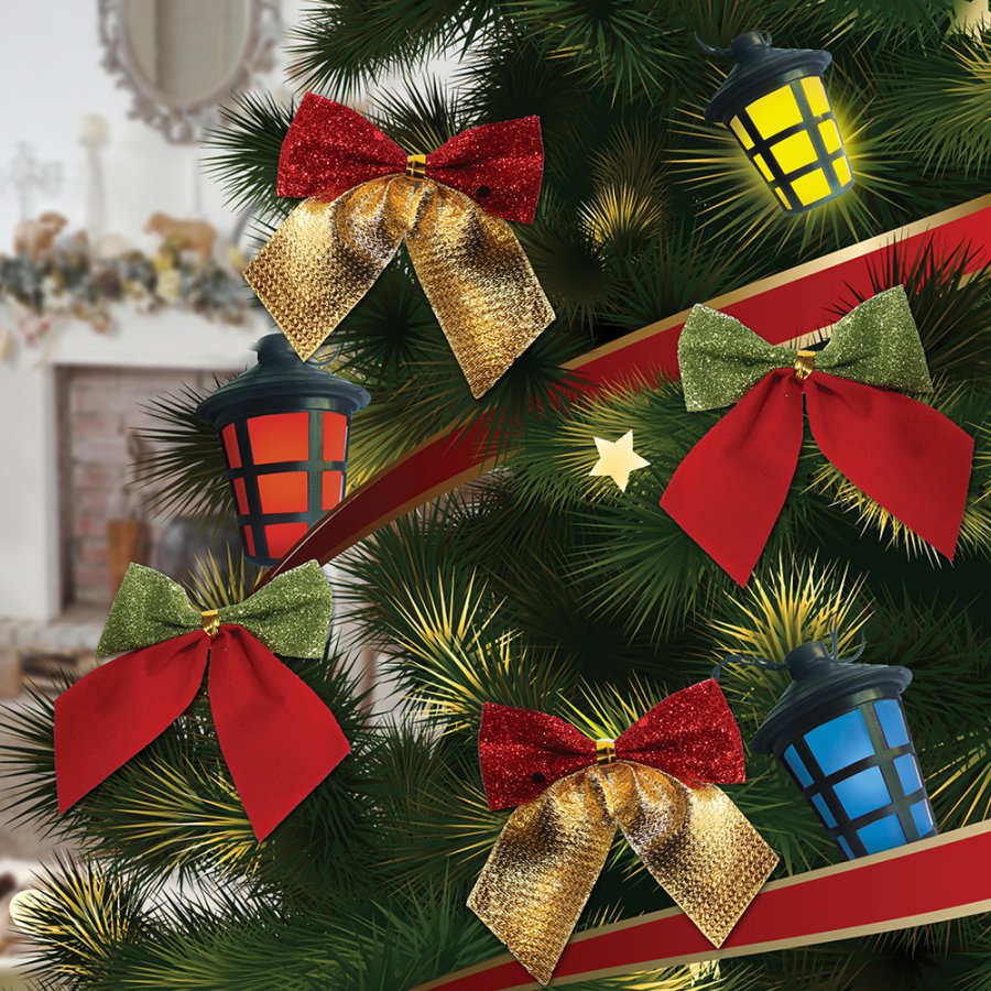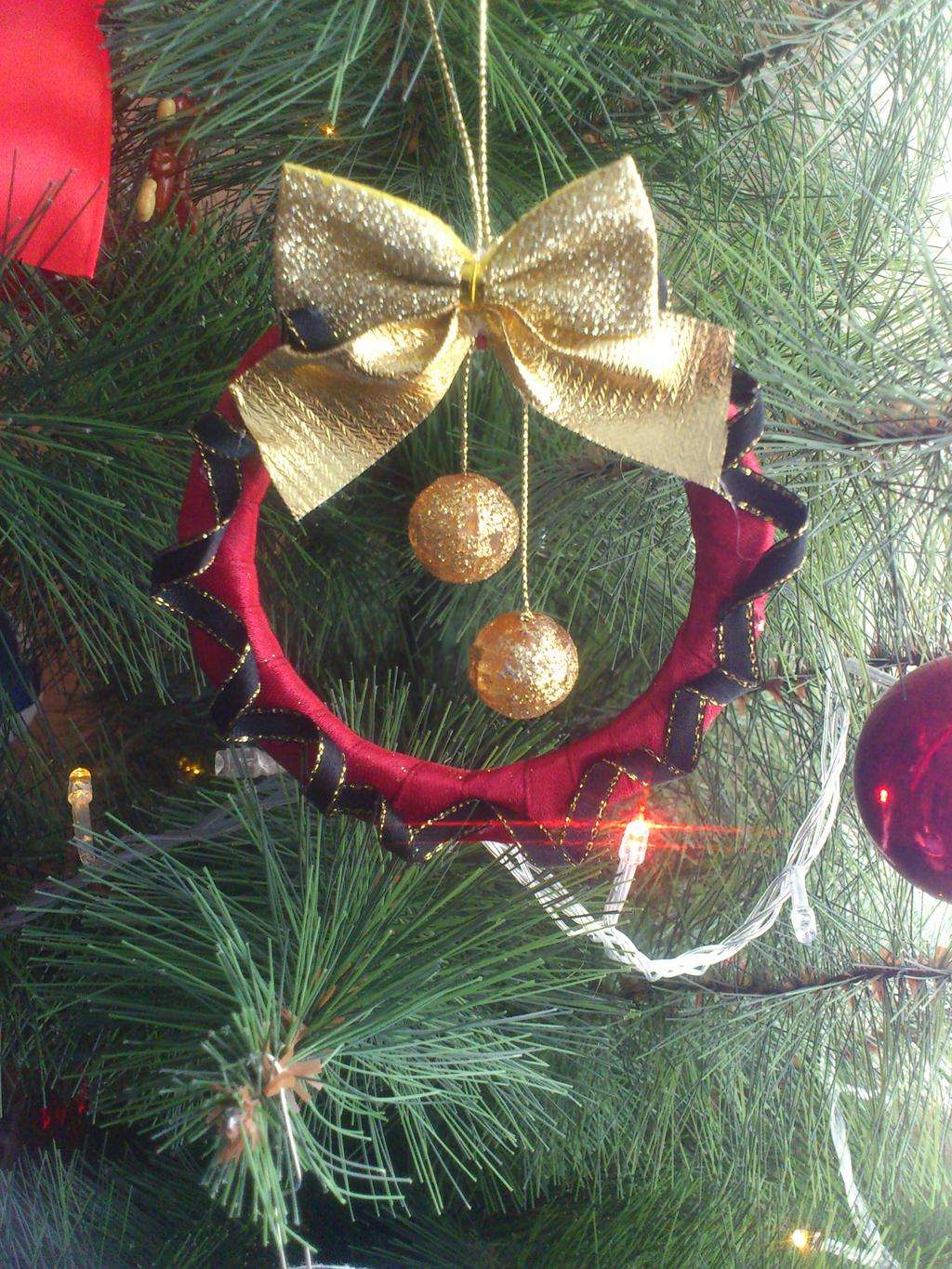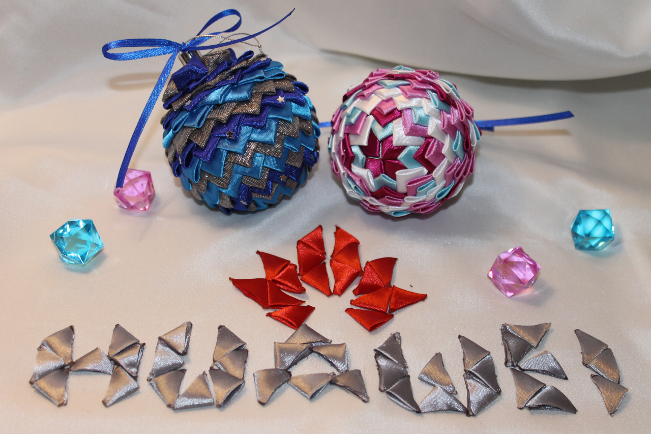 Os "brinquedos" deste ano são, talvez, os mais simples de fabricar. Você pode fazer arcos de quaisquer fitas. Não é necessário comprá-los de propósito, você pode cortar qualquer coisa desnecessária, fazendo tiras do mesmo tamanho. Arcos são formados a partir deles, que se agarram aos ramos ou com a ajuda de fios ou com a ajuda de fita dupla face.