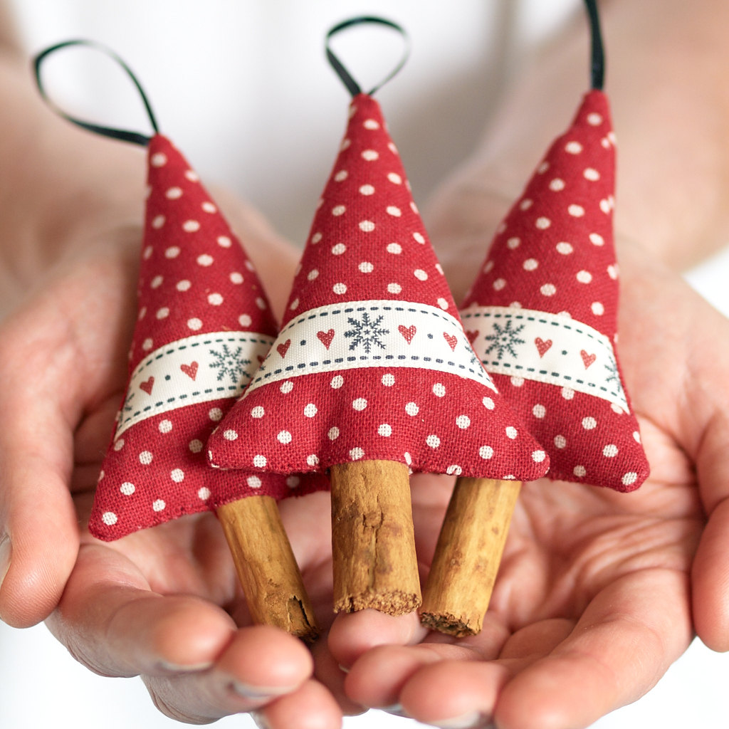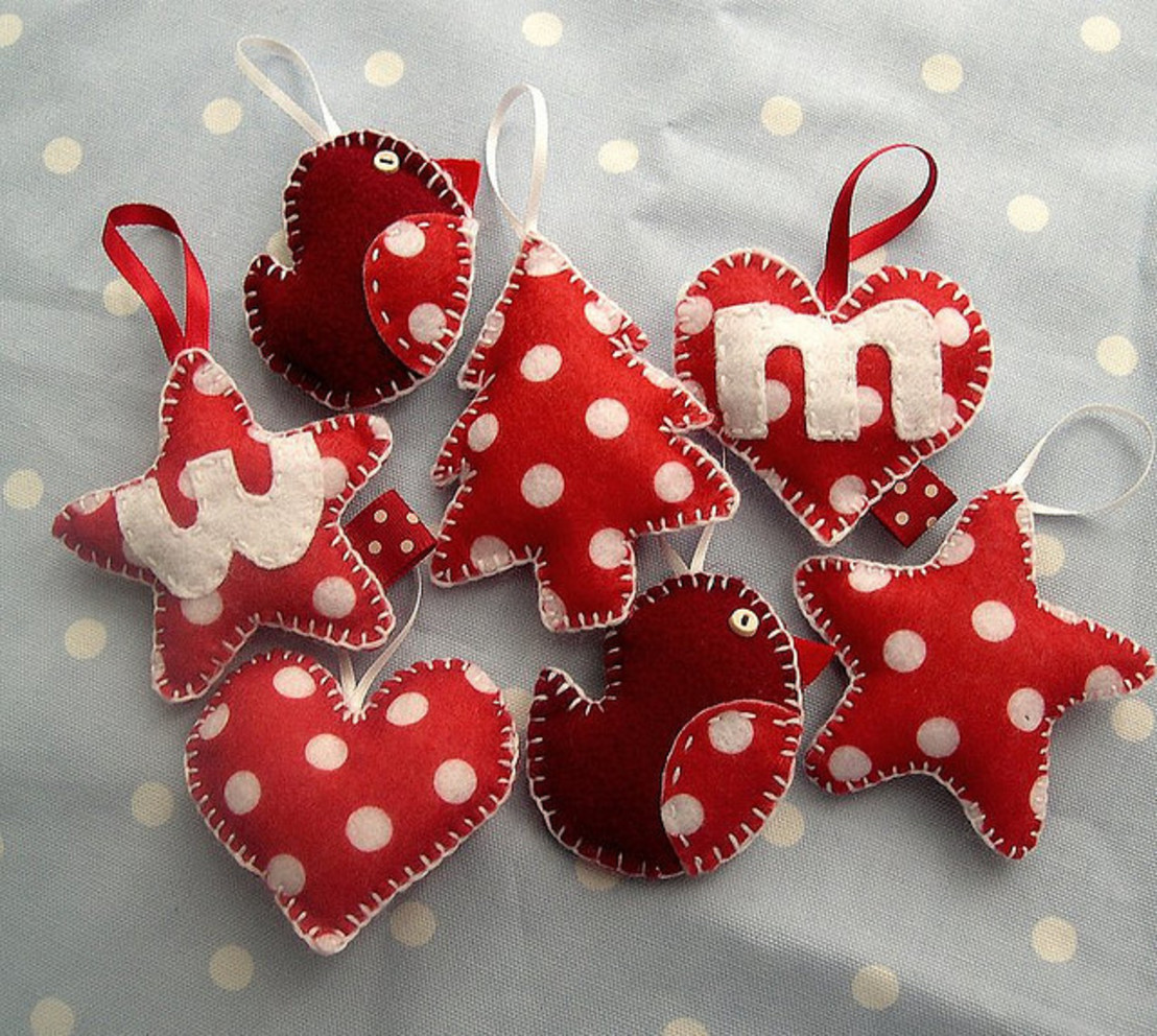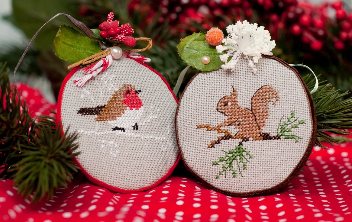 Se você está envolvido em bordados, então é um pecado não usar suas habilidades ao decorar a árvore de Ano Novo. Aqueles que sabem bordar uma cruz podem bordar temas festivos, não é necessário gastar muito tempo trabalhando com a tela inteira. Você pode bordar figuras em miniatura: anjos, espinha de peixe, estrela, boneco de neve.