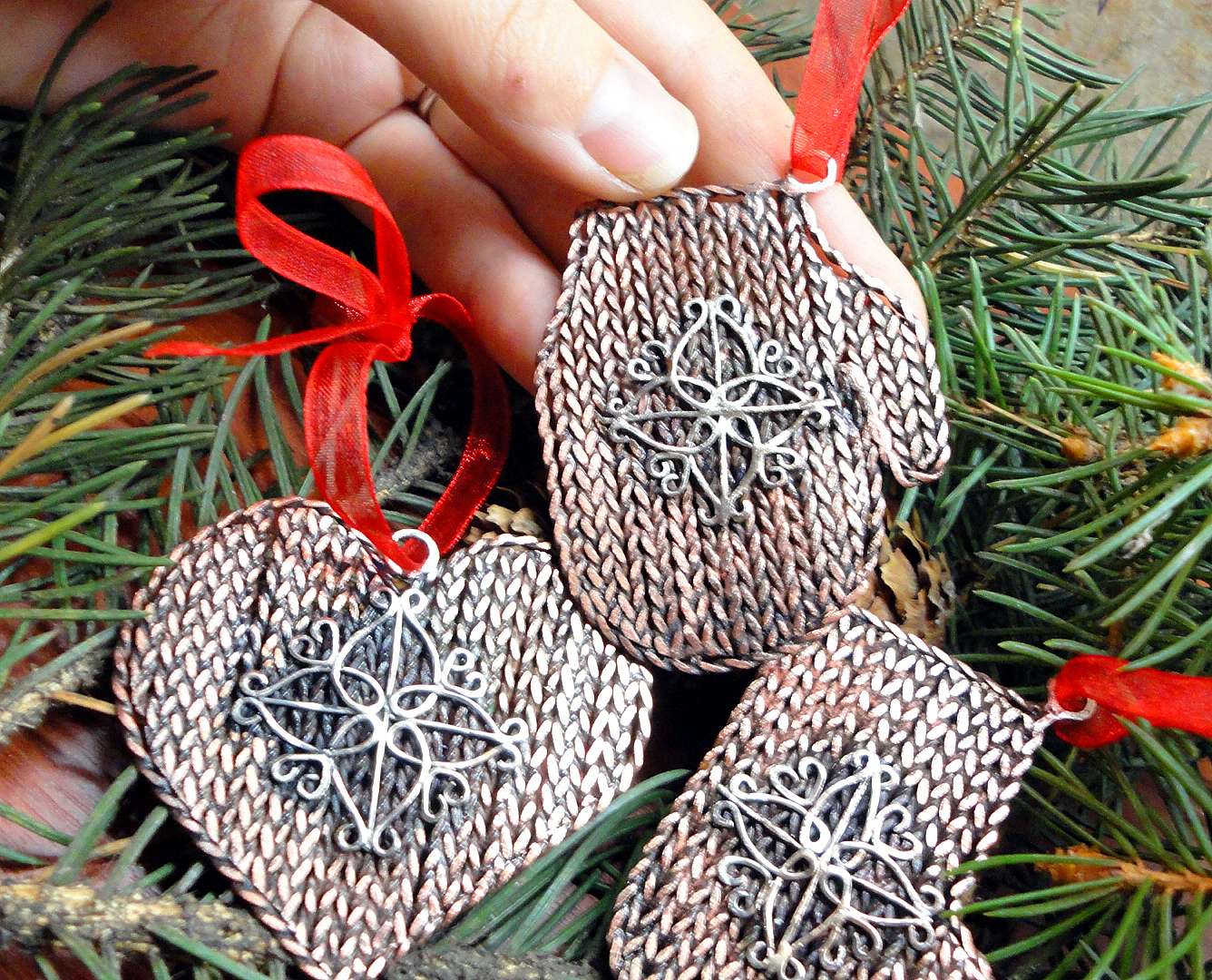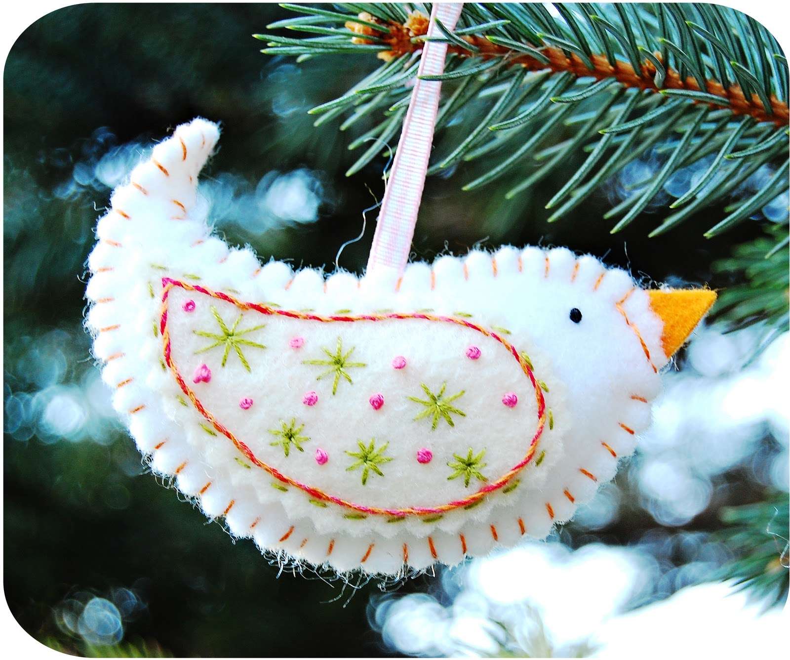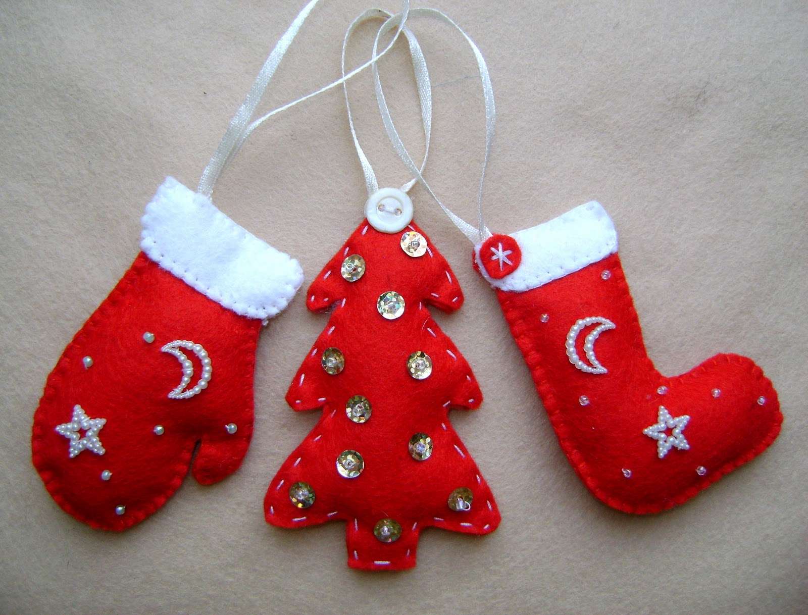 Se você está envolvido em bordados, então é um pecado não usar suas habilidades ao decorar a árvore de Ano Novo. Aqueles que sabem bordar uma cruz podem bordar temas festivos, não é necessário gastar muito tempo trabalhando com a tela inteira. Você pode bordar figuras em miniatura: anjos, espinha de peixe, estrela, boneco de neve.