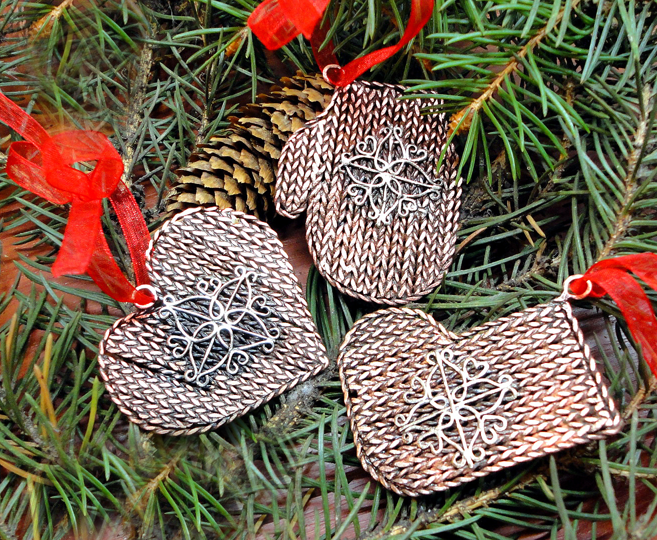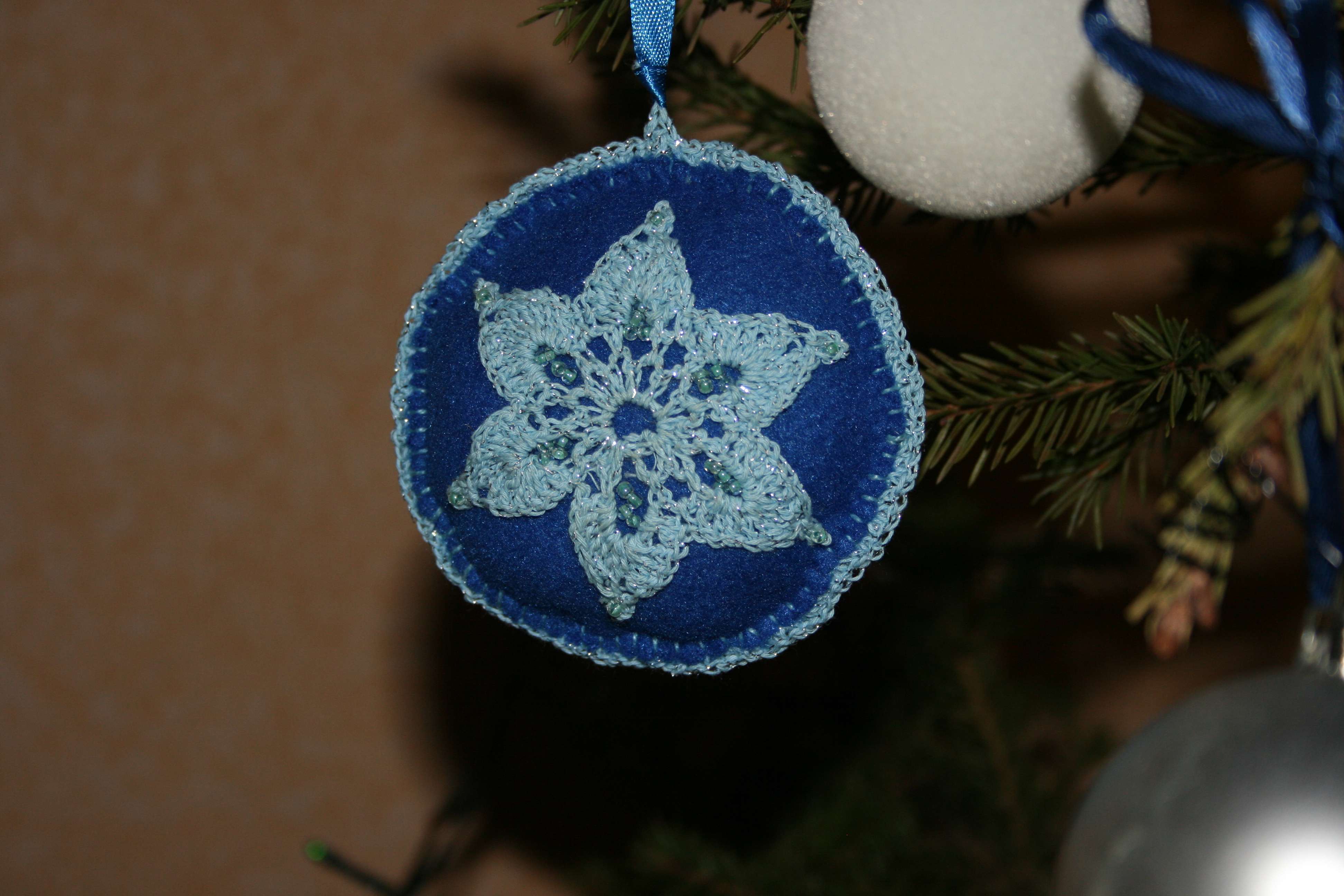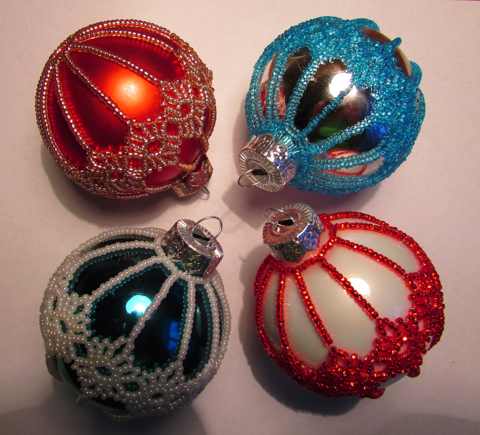 Há também muitos padrões de tecelagem de contas de decorações de Natal. Flocos de neve deste material ficam lindos em branco e azul. Apesar do fato de que tais decorações são geralmente menores do que outras decorações de Natal, elas ainda parecem bonitas e se destacam da multidão.