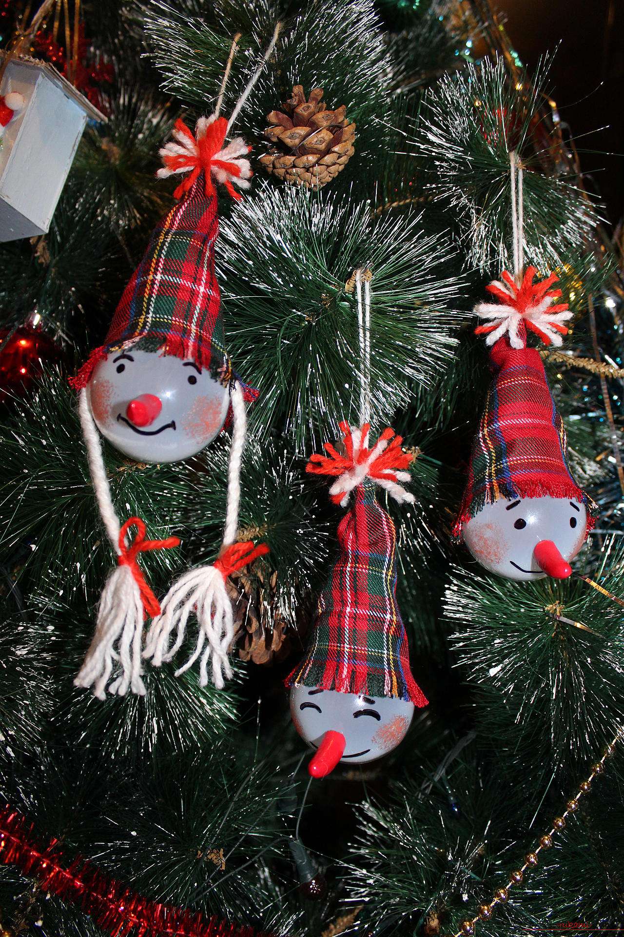 Na casa há sempre várias lâmpadas que não funcionam. E se você coletá-los propositadamente ao longo do ano, eles acumulam um número suficiente para criar um conjunto inteiro de enfeites de árvore de Natal. Todas as lâmpadas que não funcionam, de qualquer tamanho, podem ser facilmente dotadas de uma "segunda vida".
