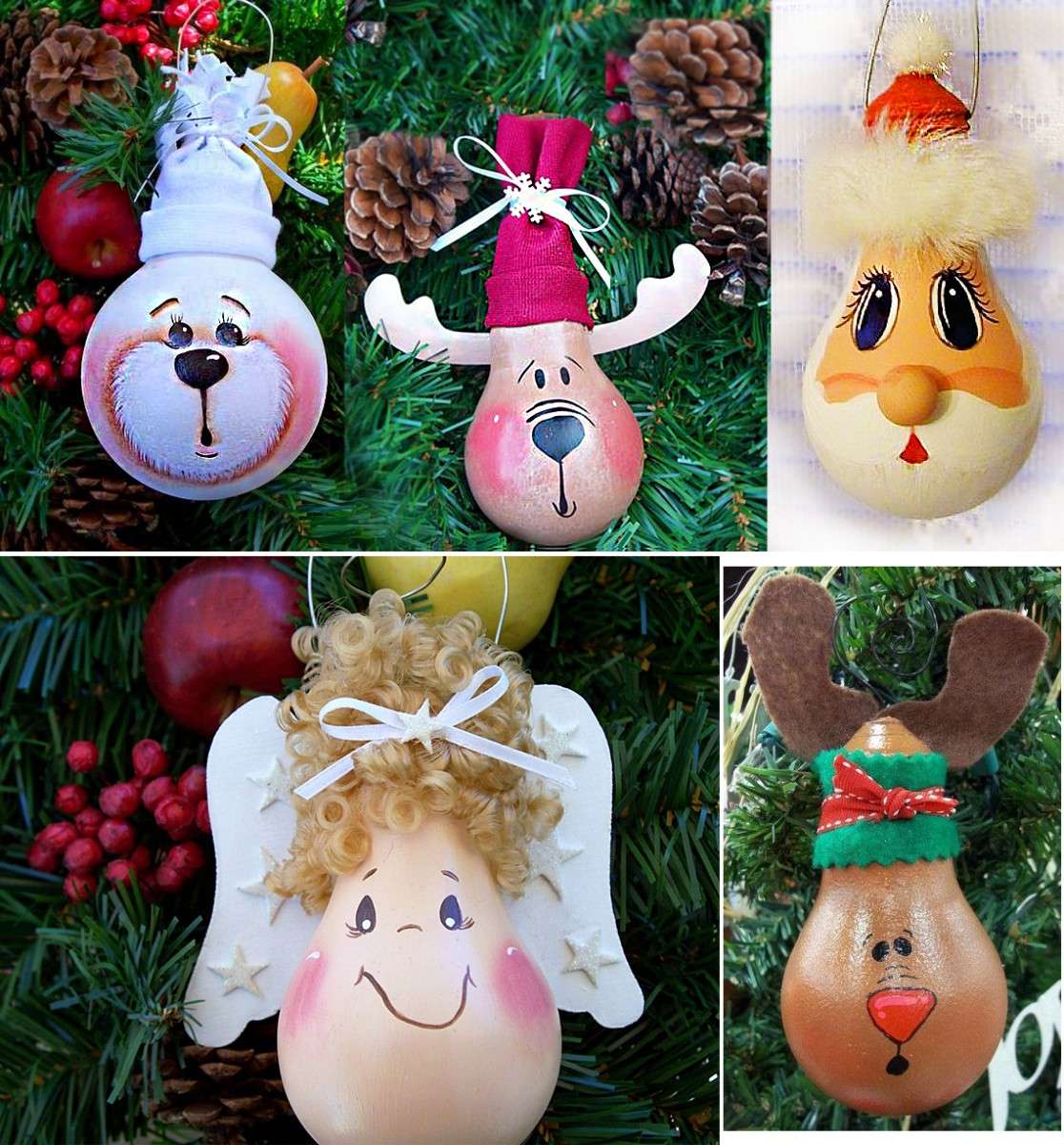 Existem várias opções de como lidar com a lâmpada, para que se tornem brinquedos de ano novo. Você pode usar essas ideias: