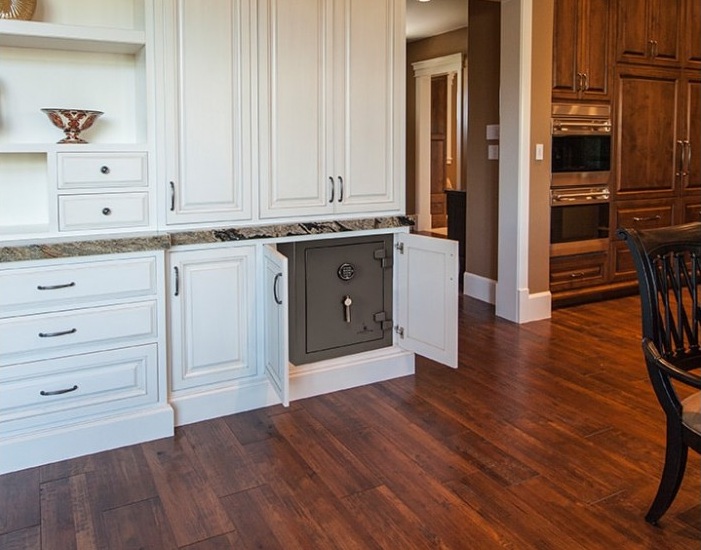 - Classe B. Os cofres de segurança da classe B são mais confiáveis do que à prova de fogo, fornecendo apenas segurança básica. Eles têm portas que são feitas de aço com uma espessura de pelo menos 1/2 polegada. Seu corpo é feito de pelo menos 1/4 "de aço. Quase sempre vem com um furo de âncora recesso de 1/2 polegada localizado no centro da base para montagem no chão. Este tipo também possui funções adicionais de proteção embutidas, como dispositivos de travamento, placas rígidas, resistentes à perfuração, travamento grande e parafusos de alta qualidade. A classe B também possui mecanismos de travamento mais seguros e confiáveis com uma combinação de teclas e um teclado.