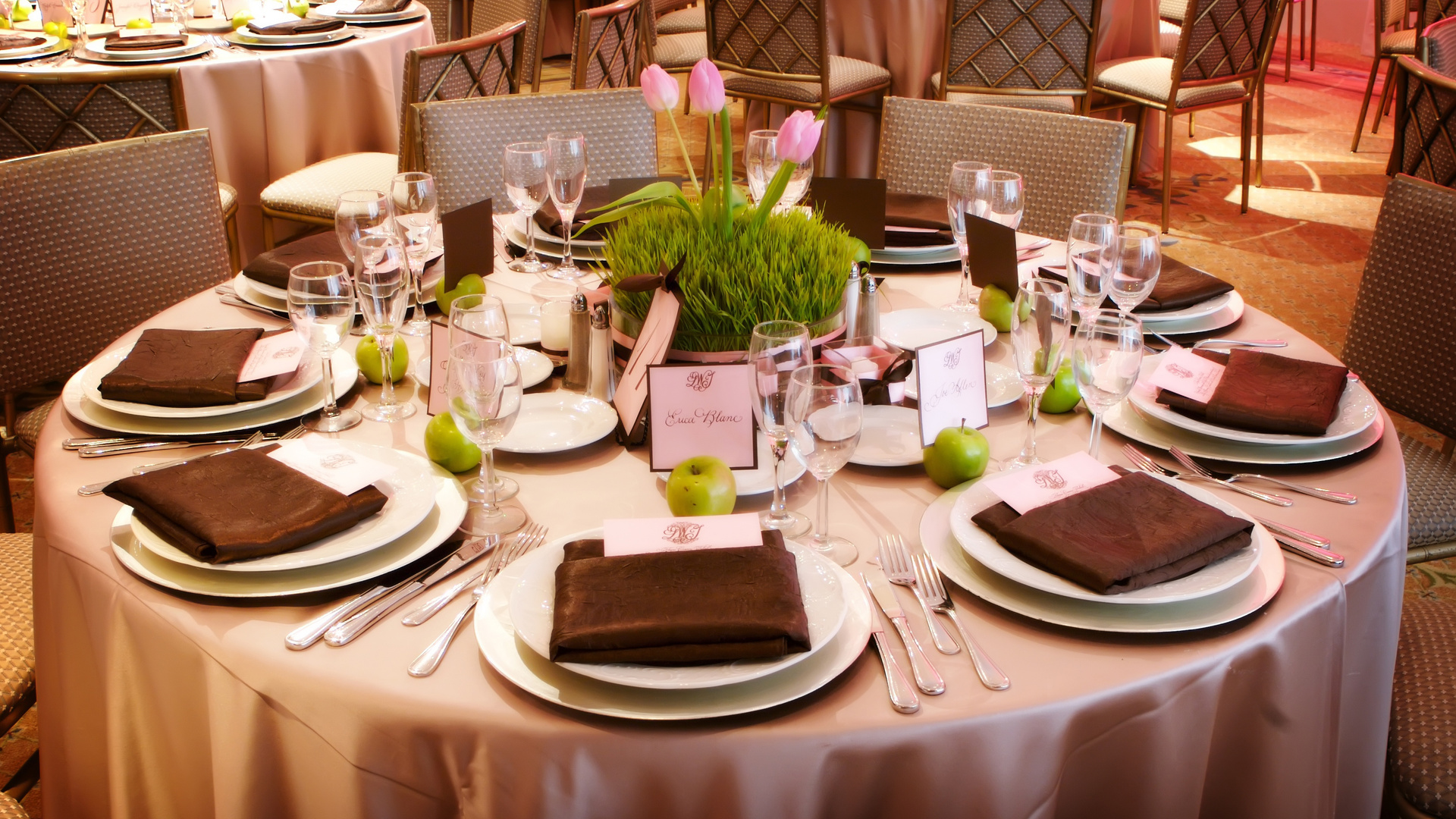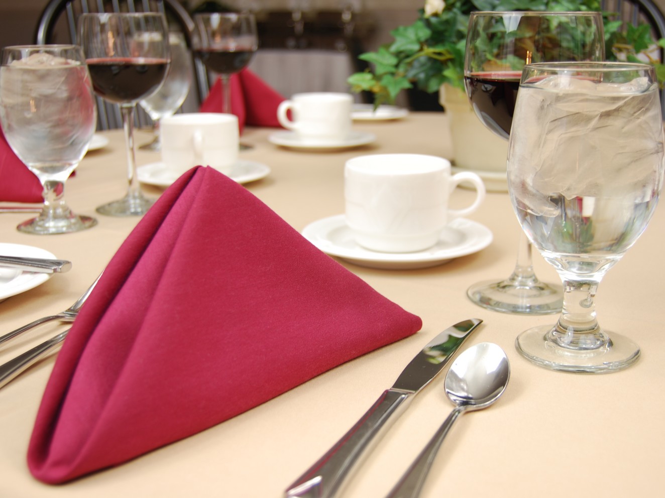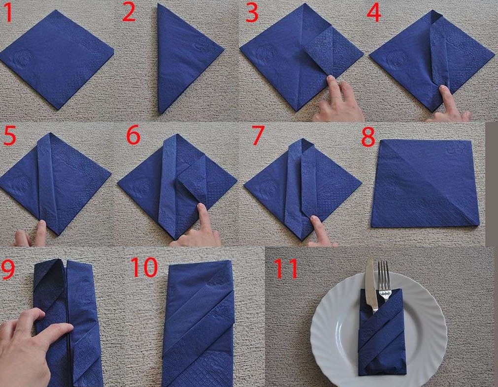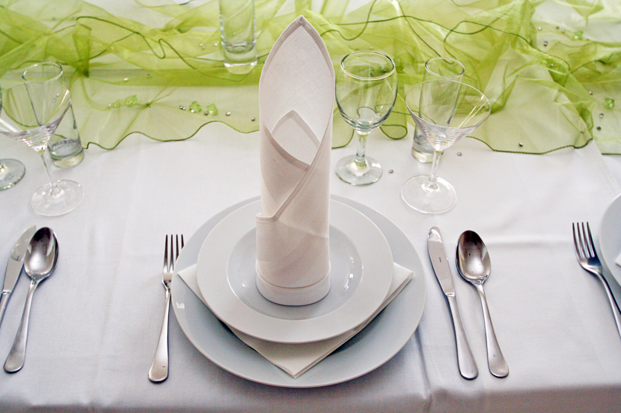 O foco é em lenços limpos: eles devem estar limpos e passados. Se eles são usados por um longo tempo, é bem possível a formação de arranhões, tais cópias devem ser substituídas. Supõe-se que os convidados usem guardanapos de pano para cobrir os joelhos e, portanto, devem parecer decentes para que possam ser aplicados com segurança em suas roupas.