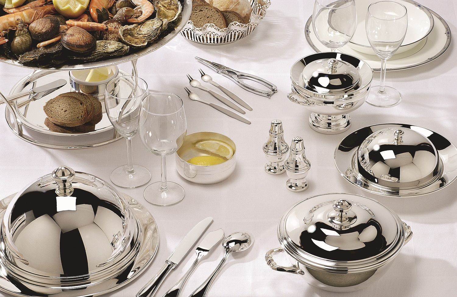 Existem também regras separadas para o fornecimento de aparelhos com especiarias. O saleiro deve ser enchido até 1/3, e a caixa de pimenta é ½, o recipiente com mostarda pode ser enchido até a borda, com ele uma colher é sempre servida. Todas as especiarias líquidas, azeite, vinagre e outros, são servidos em pequenas garrafas (geralmente 100-150 ml).